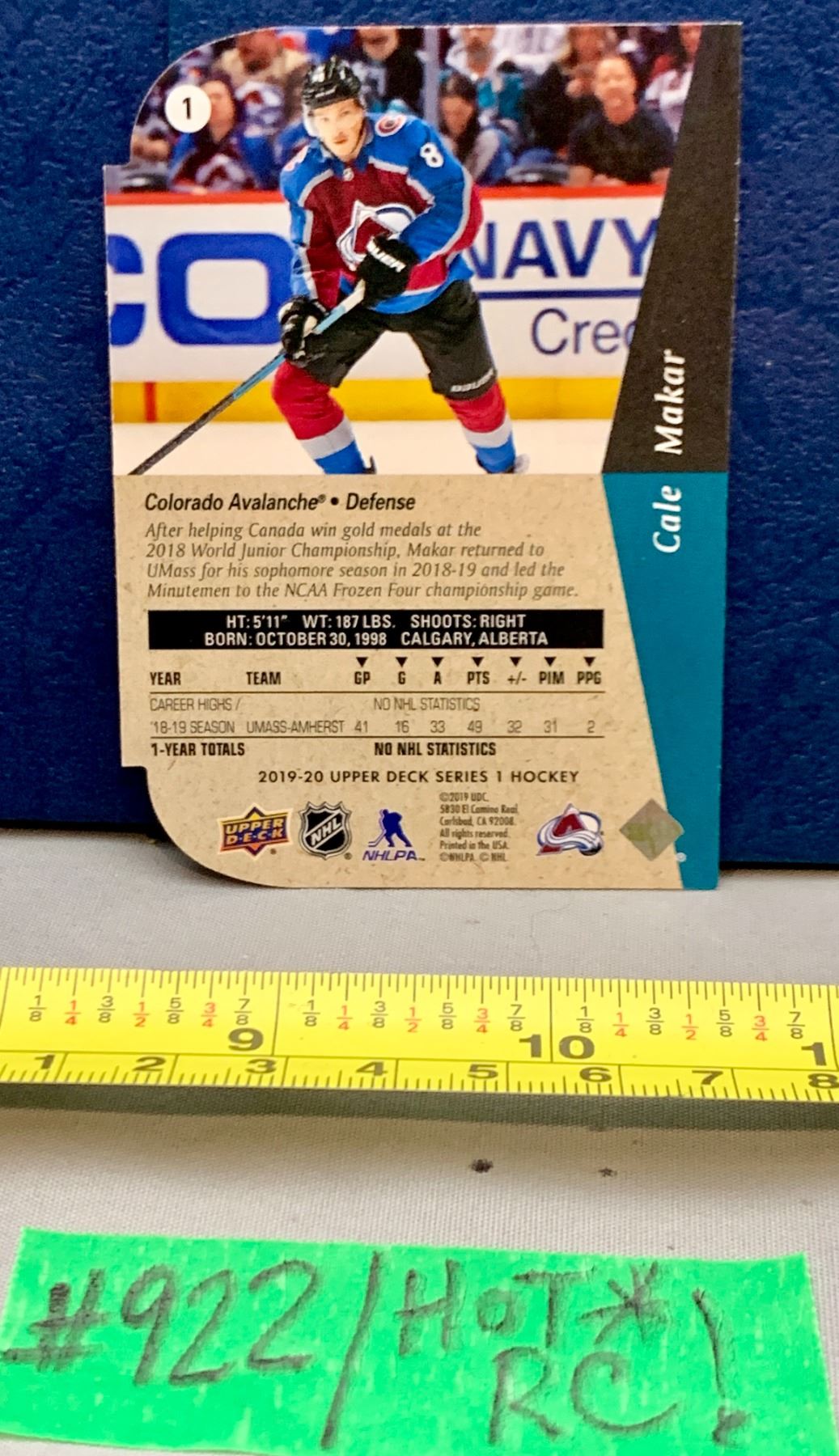 NHL HOCKEY - Cale Makar Rare Gold Foil Die-Cut Rookie Card