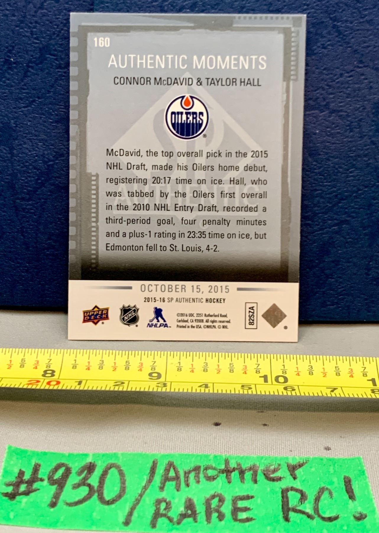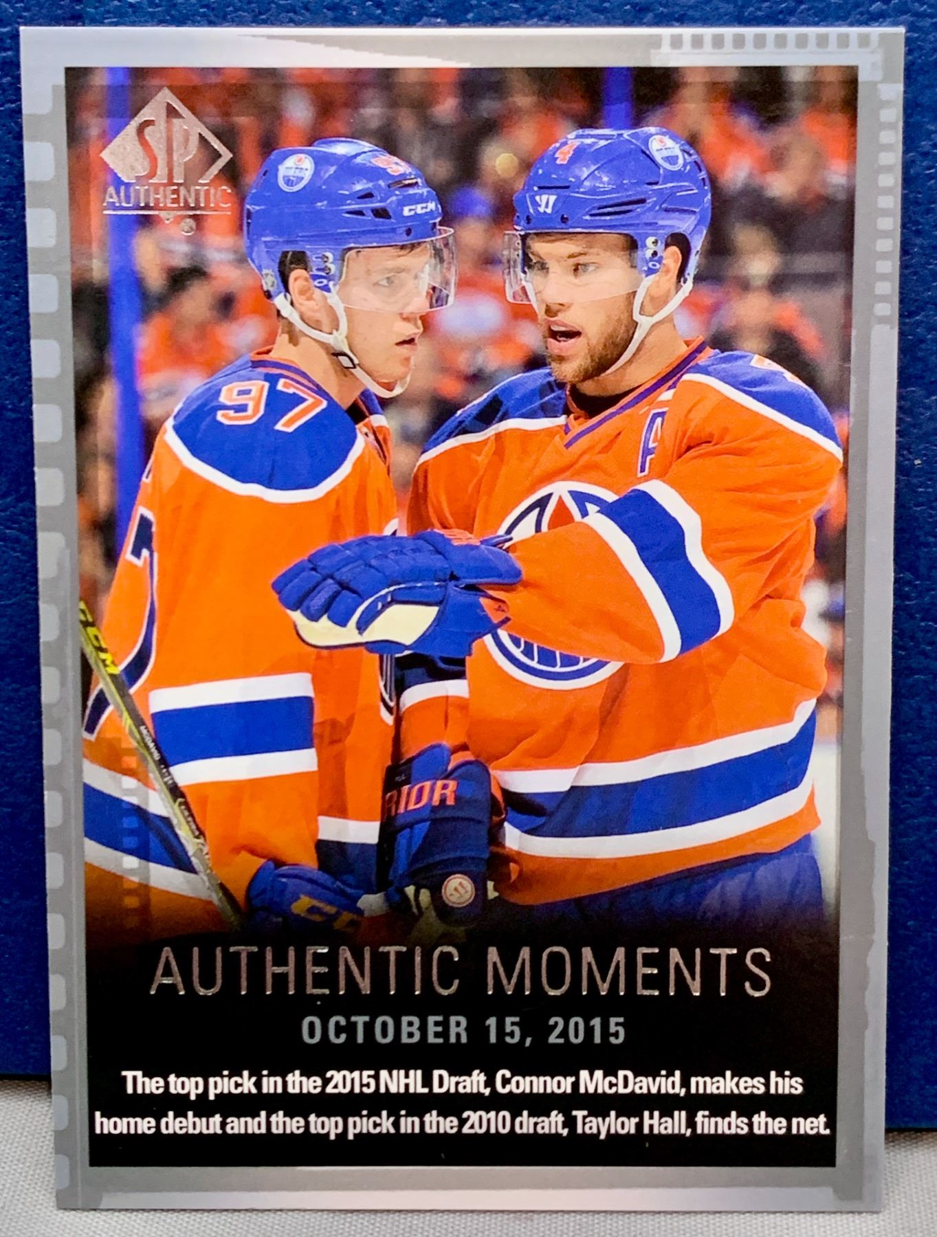 NHL HOCKEY - Connor McDavid & Taylor Hall Authetic Moments 2015 Rookie Card