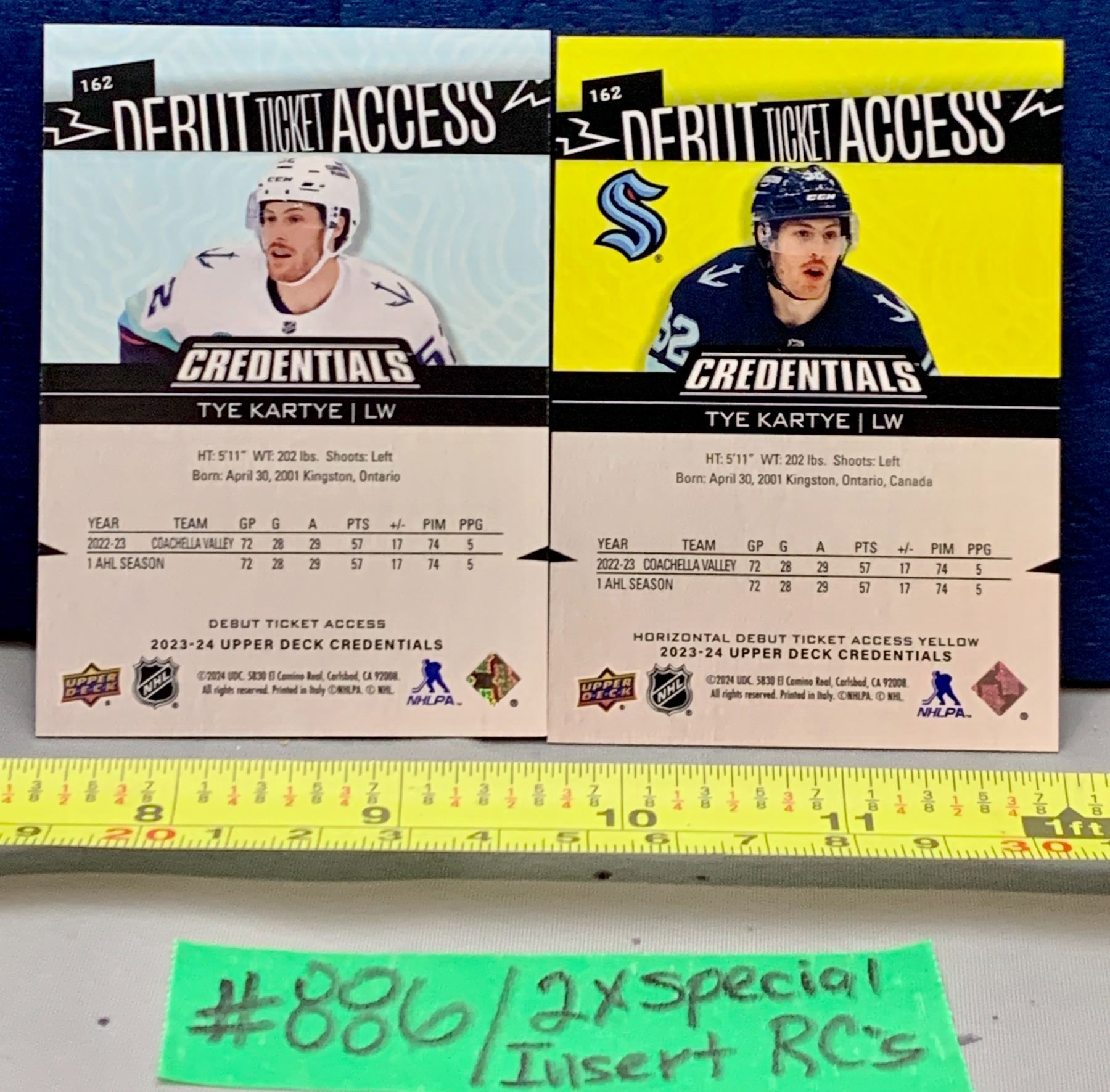 NHL HOCKEY - Credentials Debut Ticket Access Gold and Silver Rookie Cards - Tye Kartye