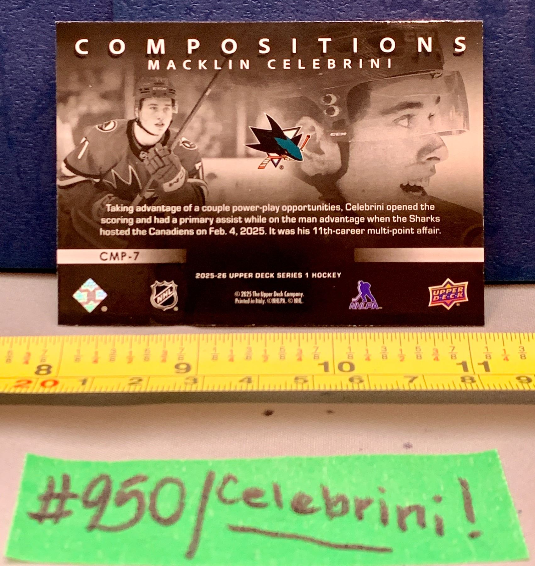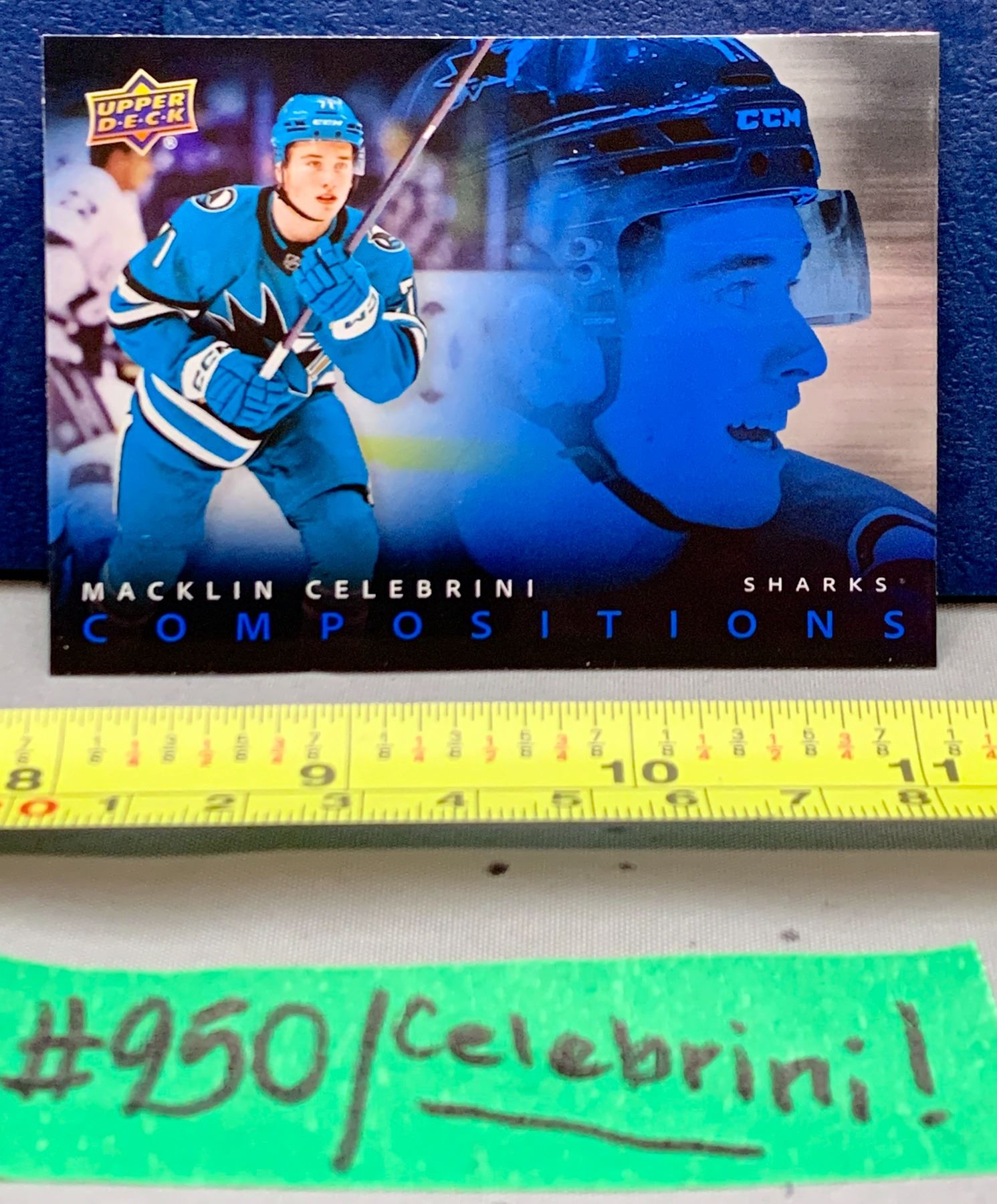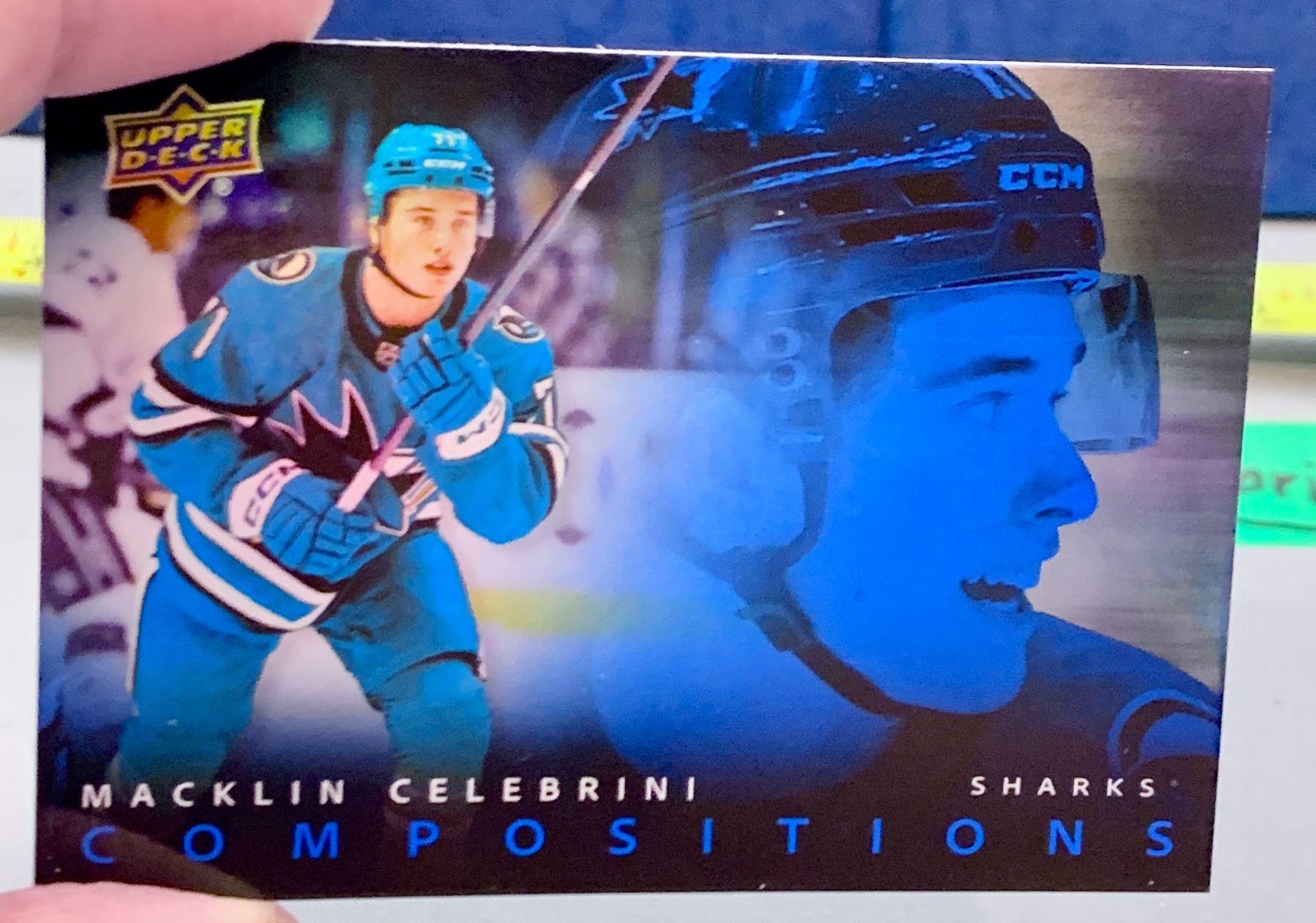 NHL HOCKEY - Macklin Celebrini COMPOSITIONS Blue Foil Holo Card