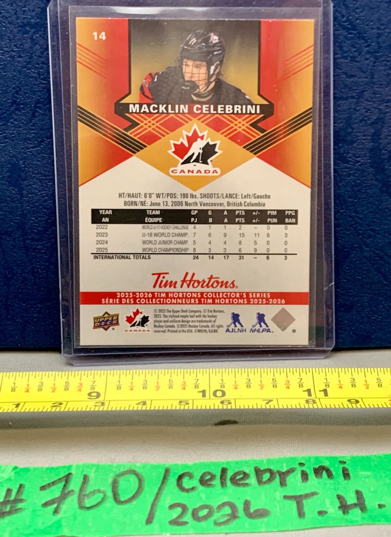 NHL HOCKEY - Macklin Celebrini Tim Hortons 2026 Team Canada Card