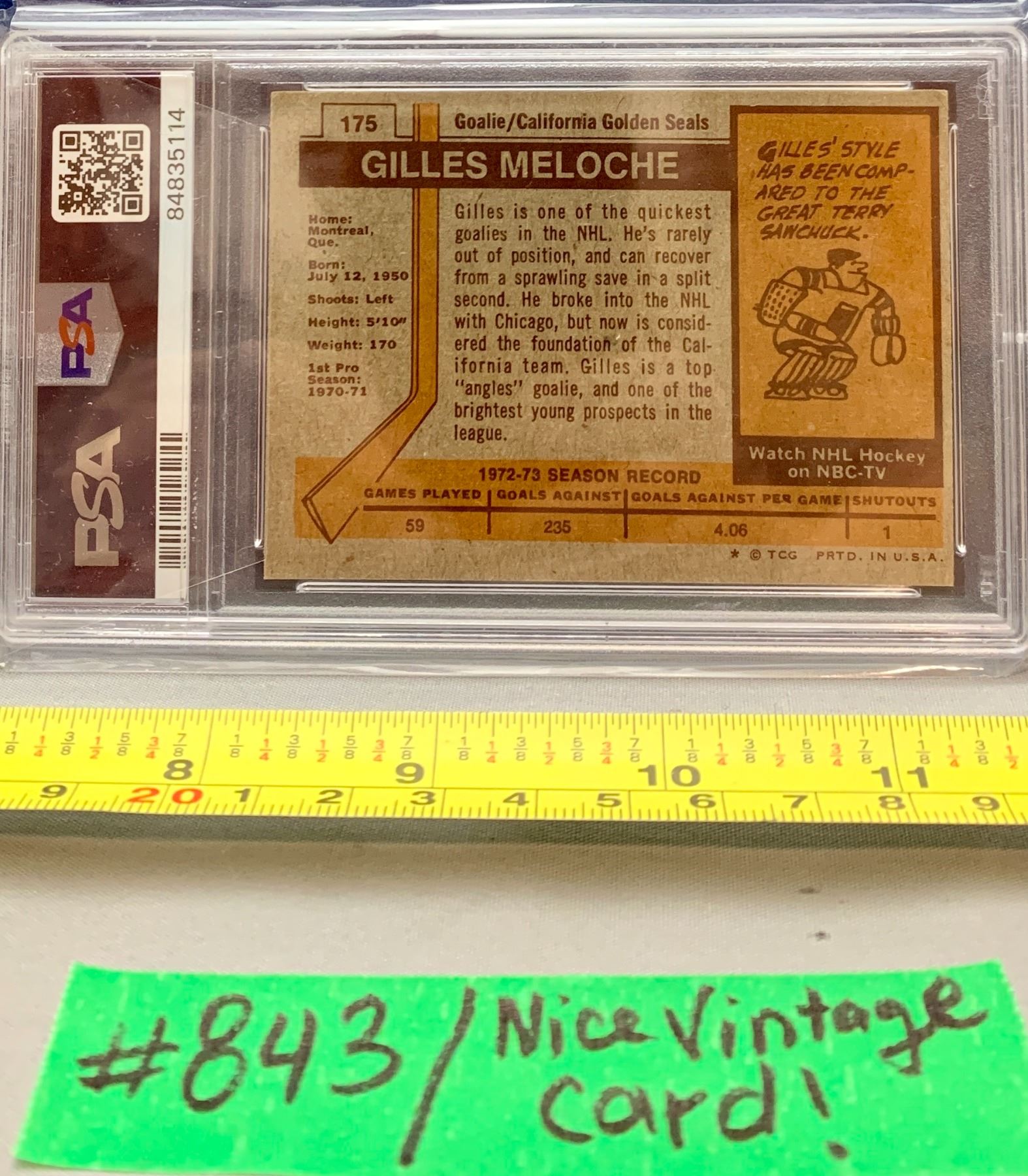 NHL HOCKEY - OPC 1973 TOPPS Gilles Meloche PSA 5 Great 53 Yr Old Card!