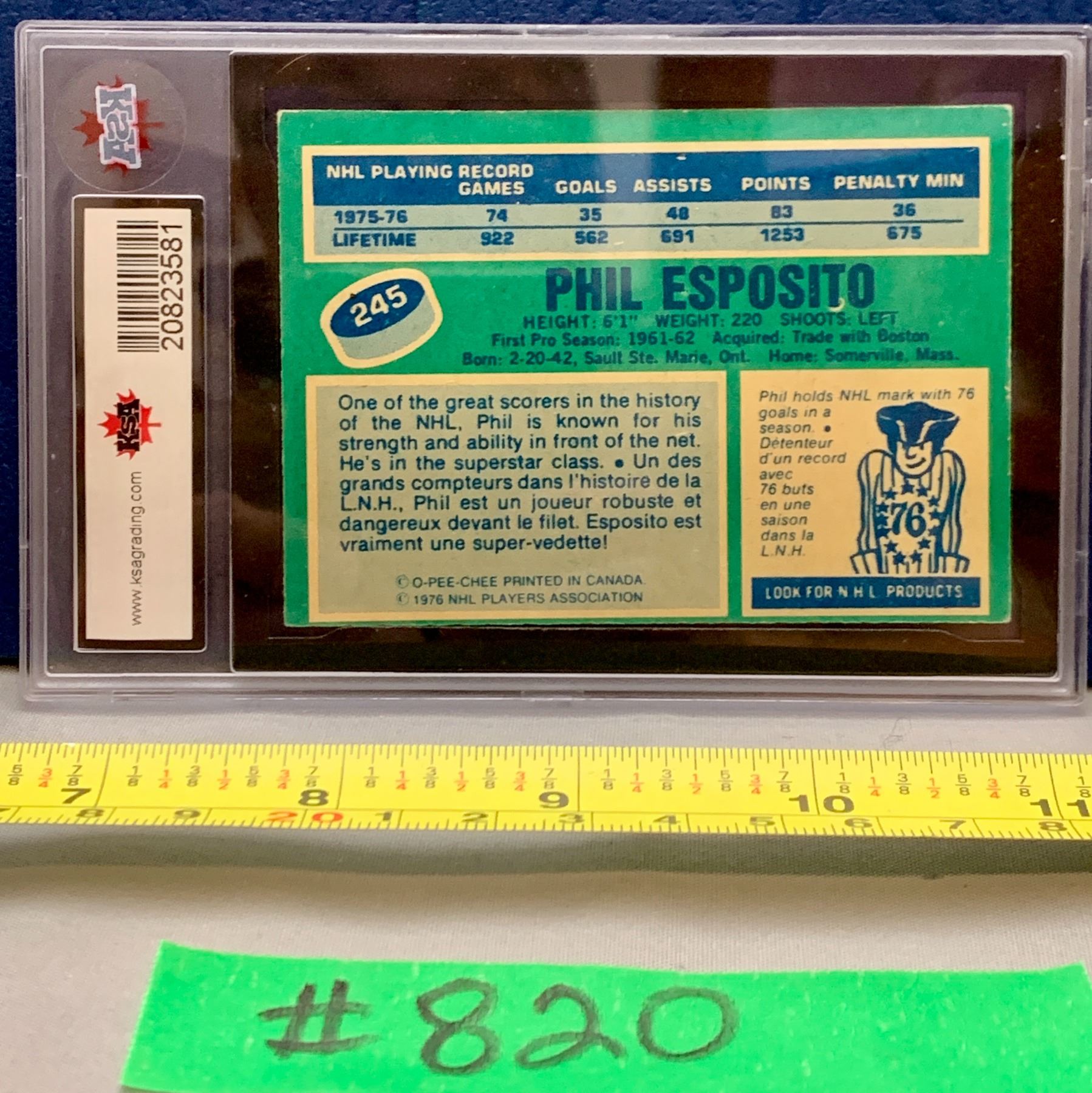 NHL HOCKEY - OPC 1976-77 Phil Esposito KSA 6.5