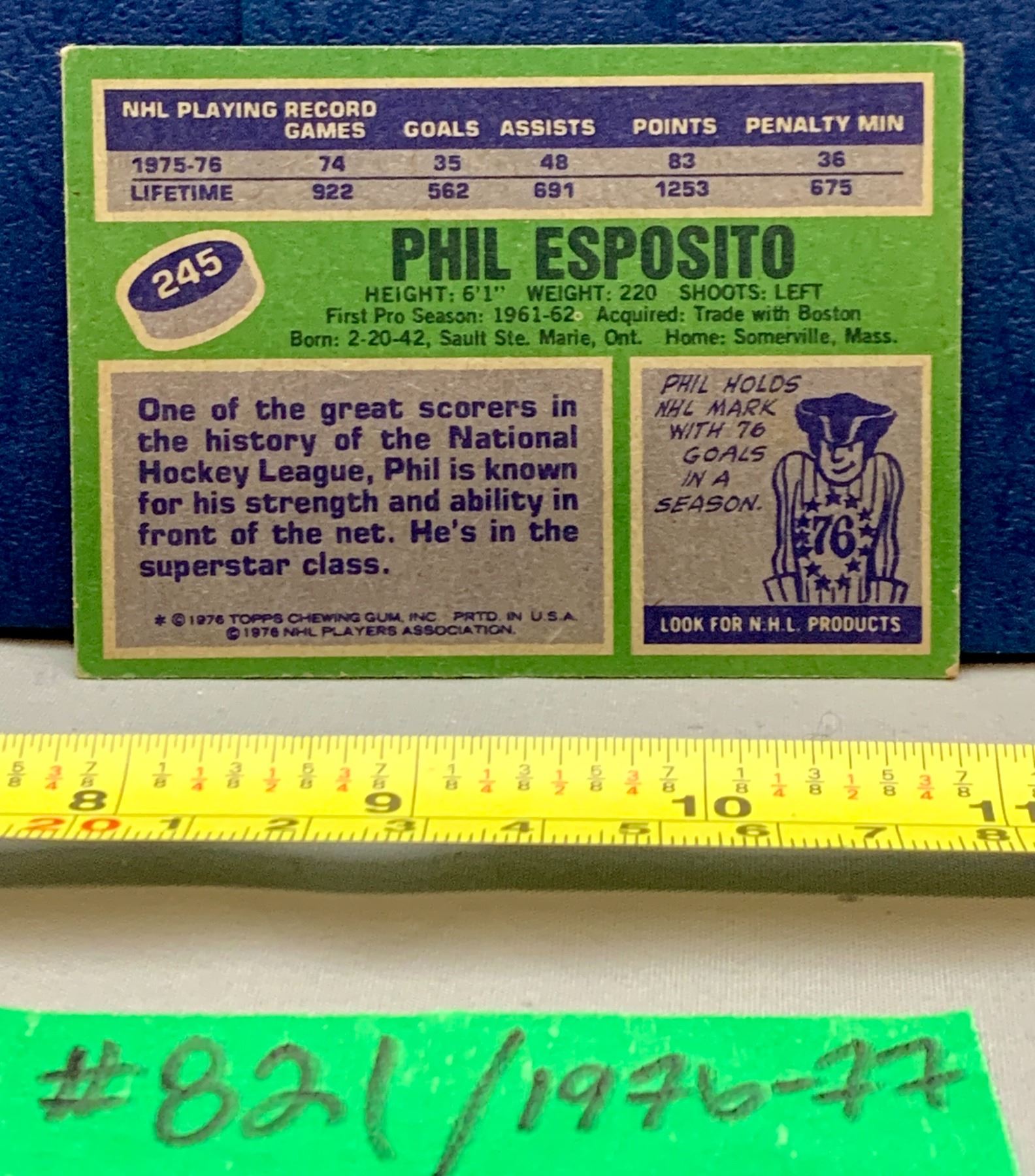NHL HOCKEY - OPC 1976-77 Phil Esposito