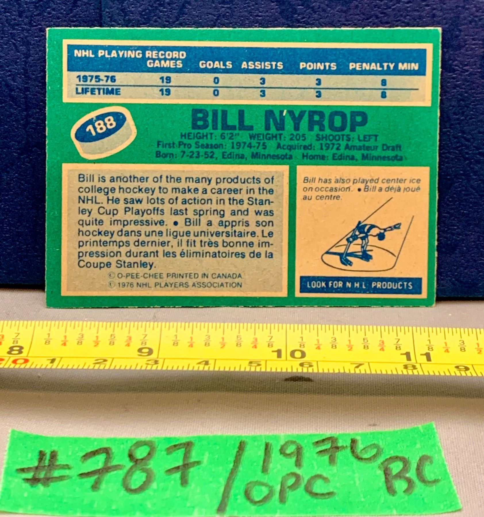 NHL HOCKEY - OPC 1976 Bill Nyrop Rookie Card