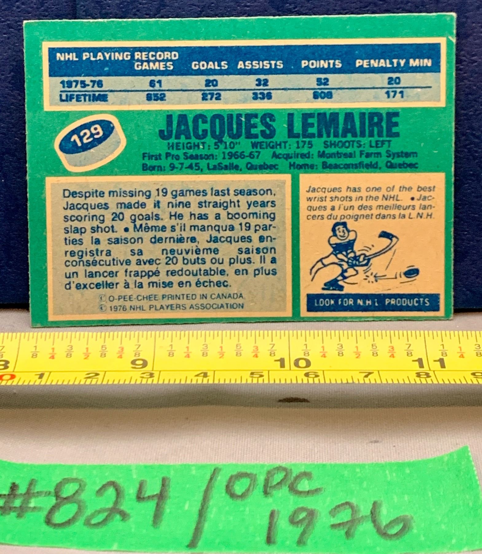 NHL HOCKEY - OPC 1976 Jacques Lemaire