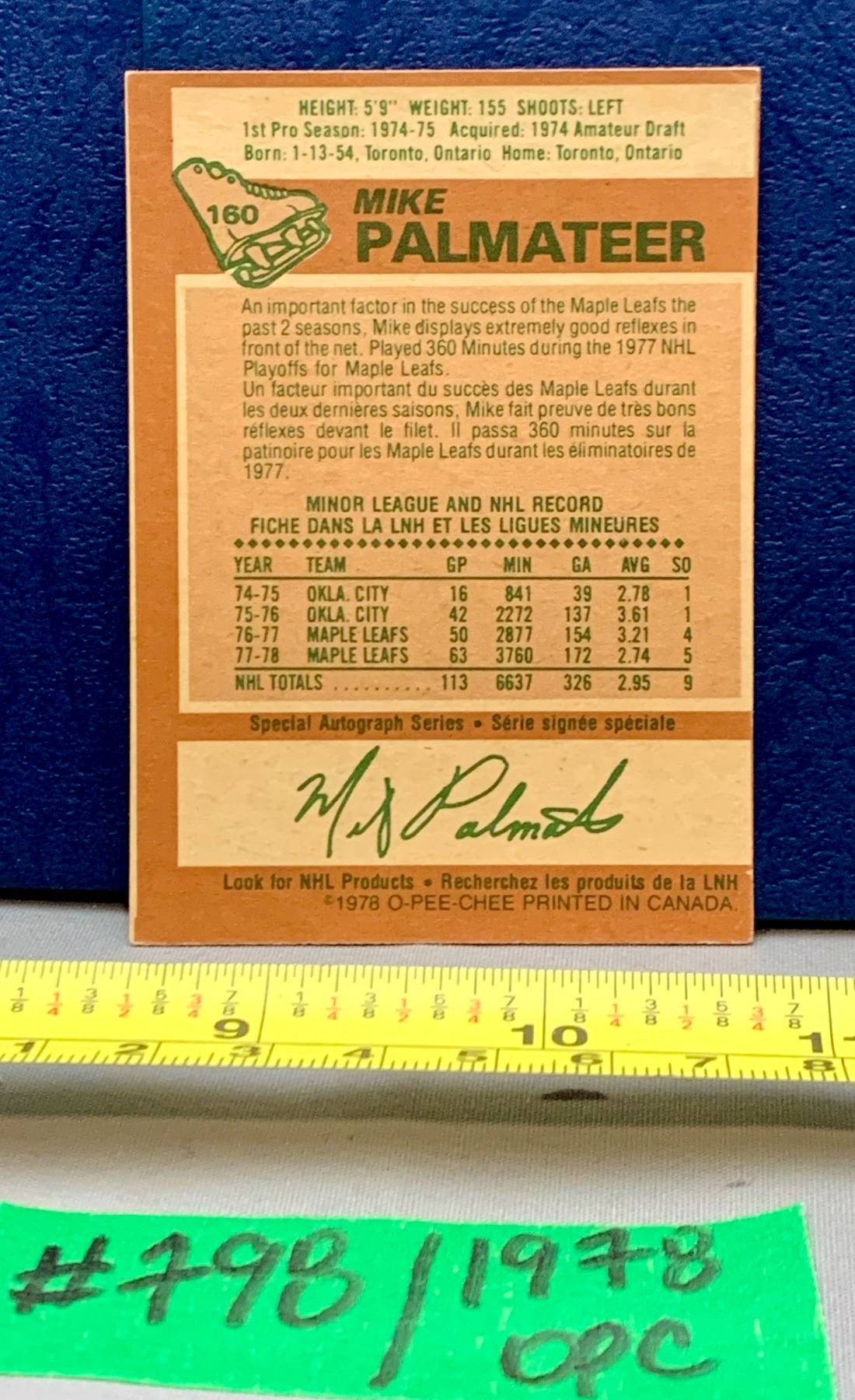 NHL HOCKEY - OPC 1978 Mike Palmateer