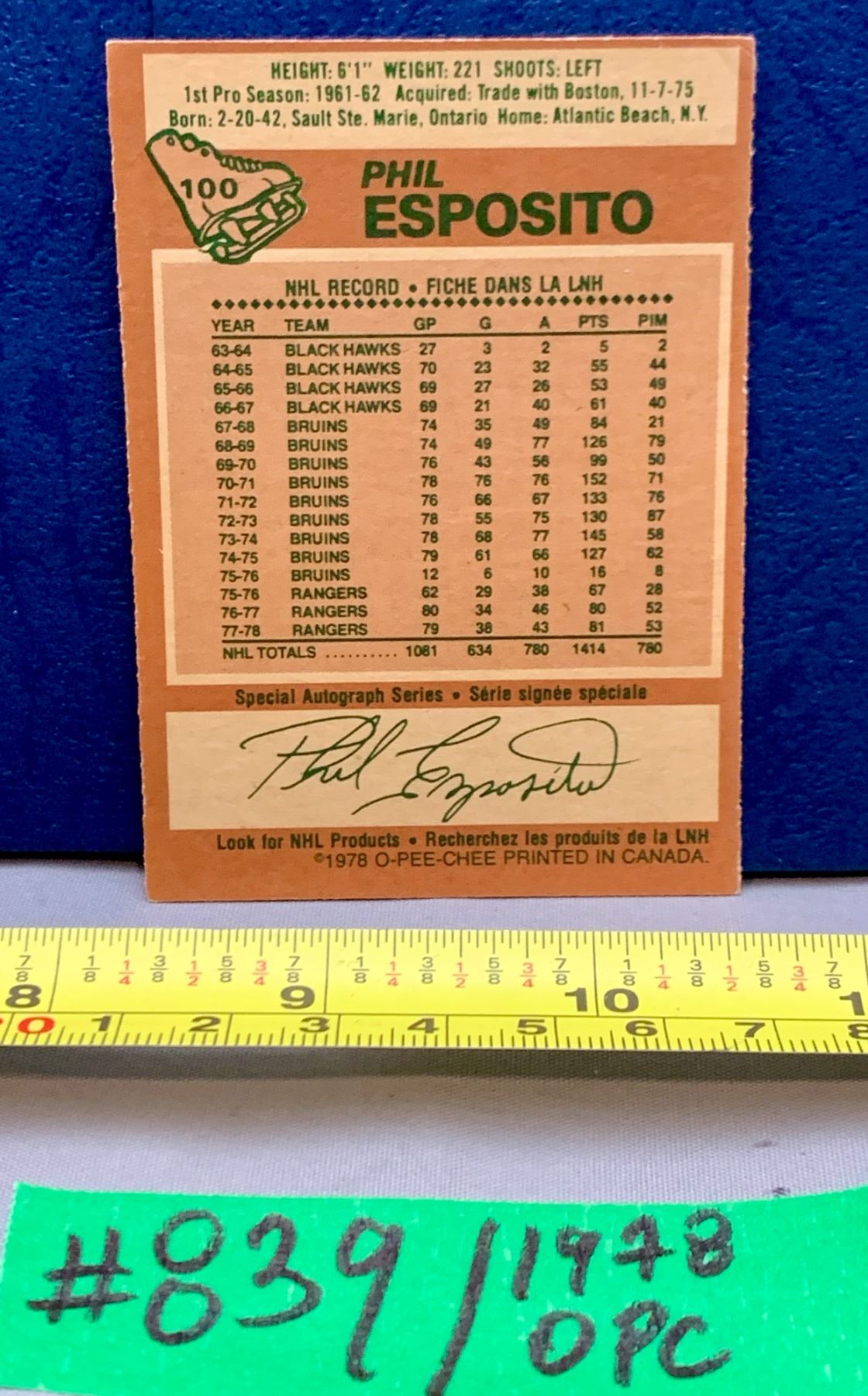 NHL HOCKEY - OPC 1978 Phil Esposito