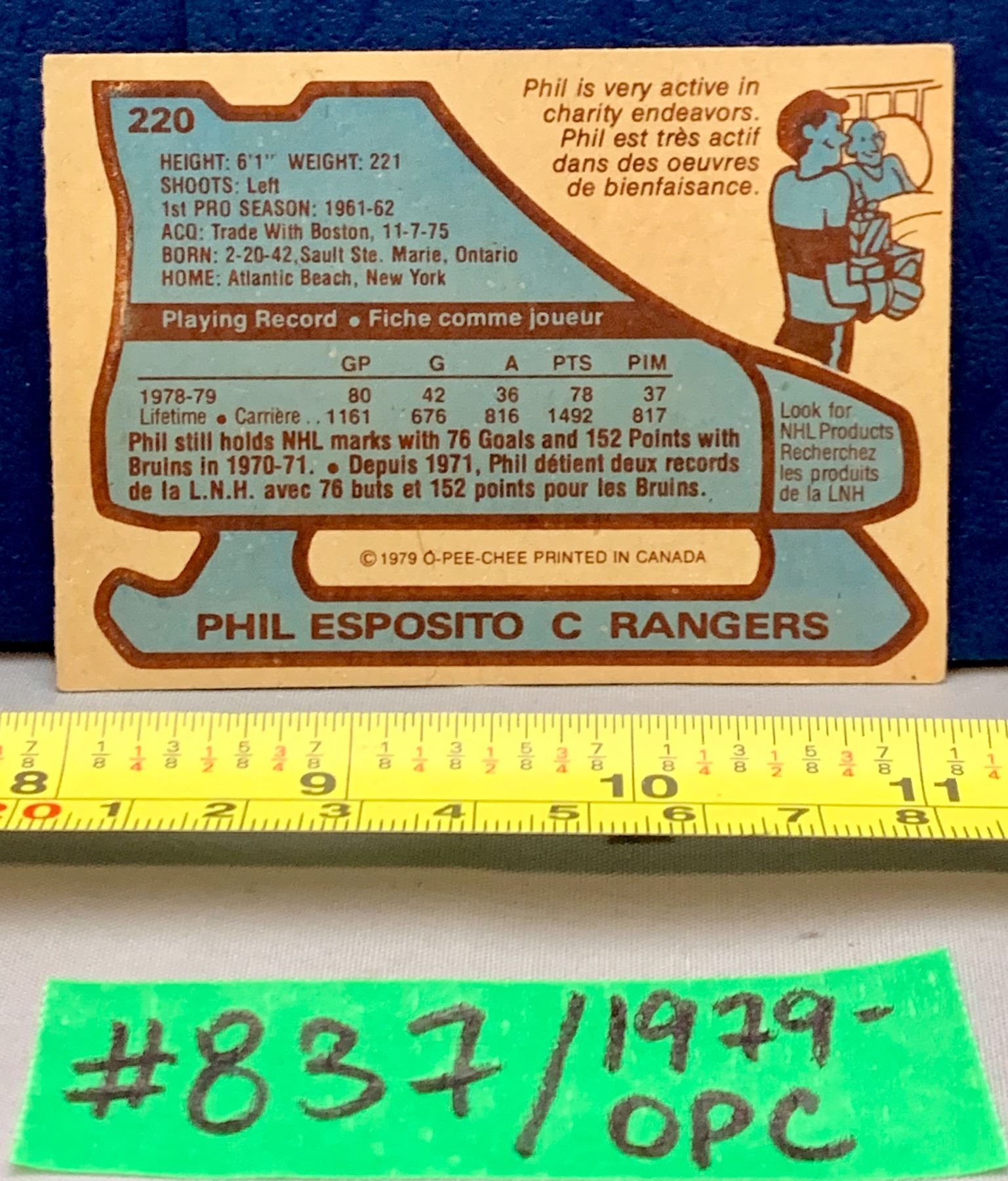 NHL HOCKEY - OPC 1979-80 Phil Esposito