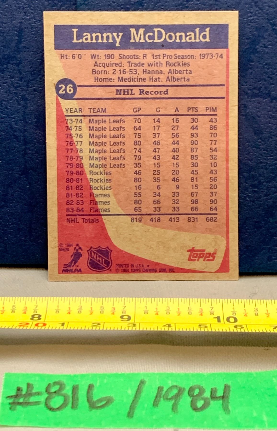 NHL HOCKEY - OPC 1984 Lanny McDonald Flames