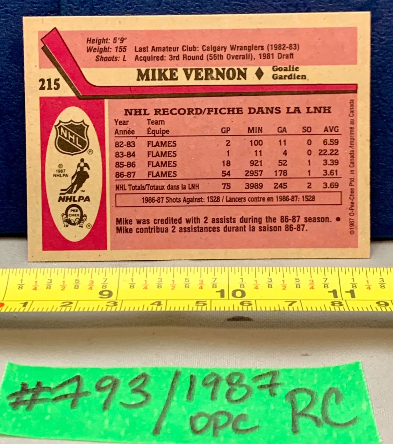 NHL HOCKEY - OPC 1987 Mike Vernon rare Rookie Card