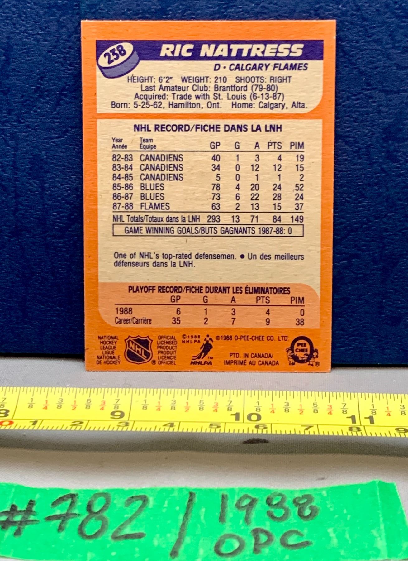 NHL HOCKEY - OPC 1988 Ric Nattress
