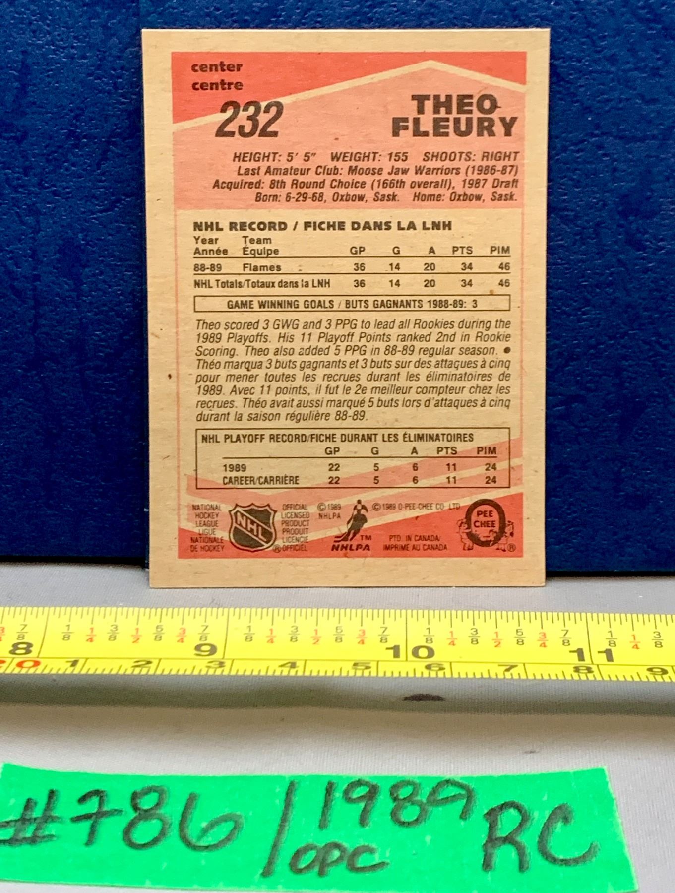 NHL HOCKEY - OPC 1989 Theoren Fleury Rookie Card