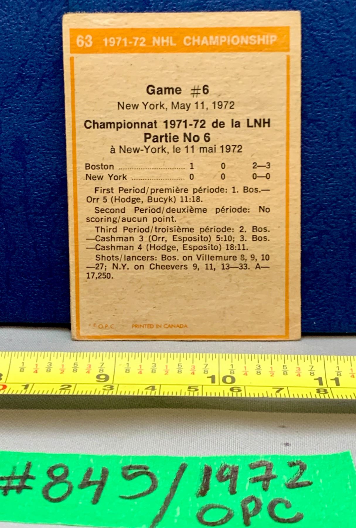 NHL HOCKEY - OPC Rare 1971-72 Playoffs Card Bruins Vs Rangers Game 6