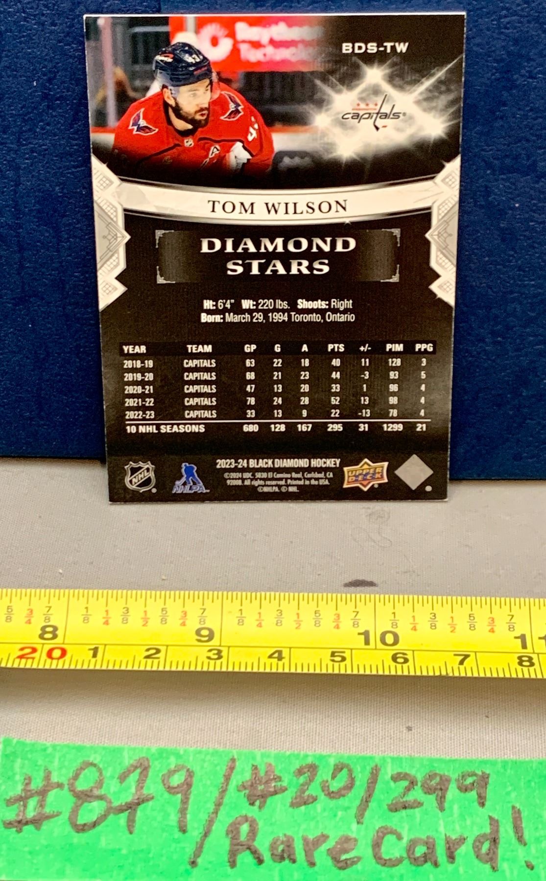 NHL HOCKEY - Rare Black Diamond Tom Wilson Rainbow #020/299 Thick Card! A Beauty!