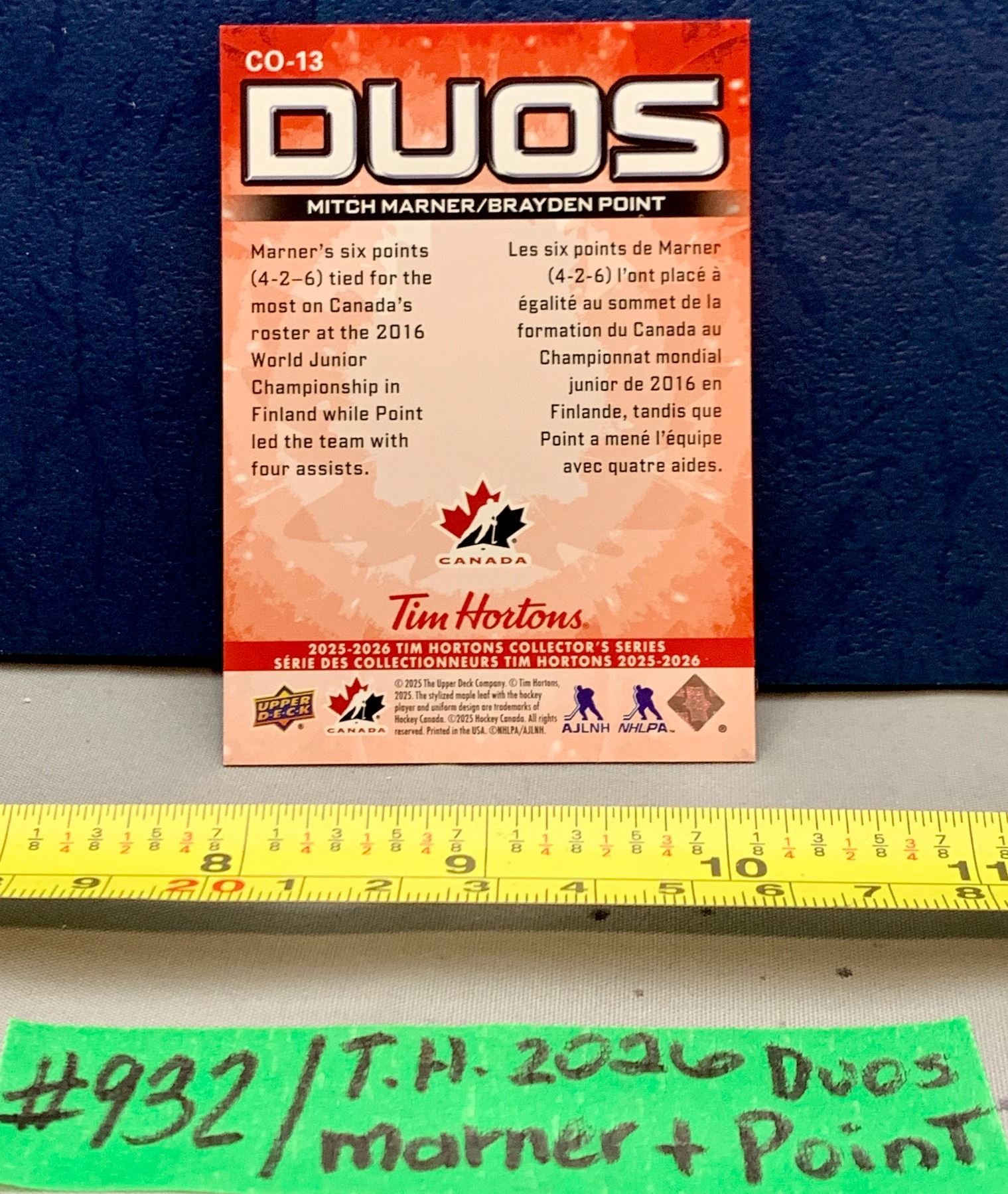 NHL HOCKEY - Rare & Sought After Tim Hortons DUOS - Marner & Point