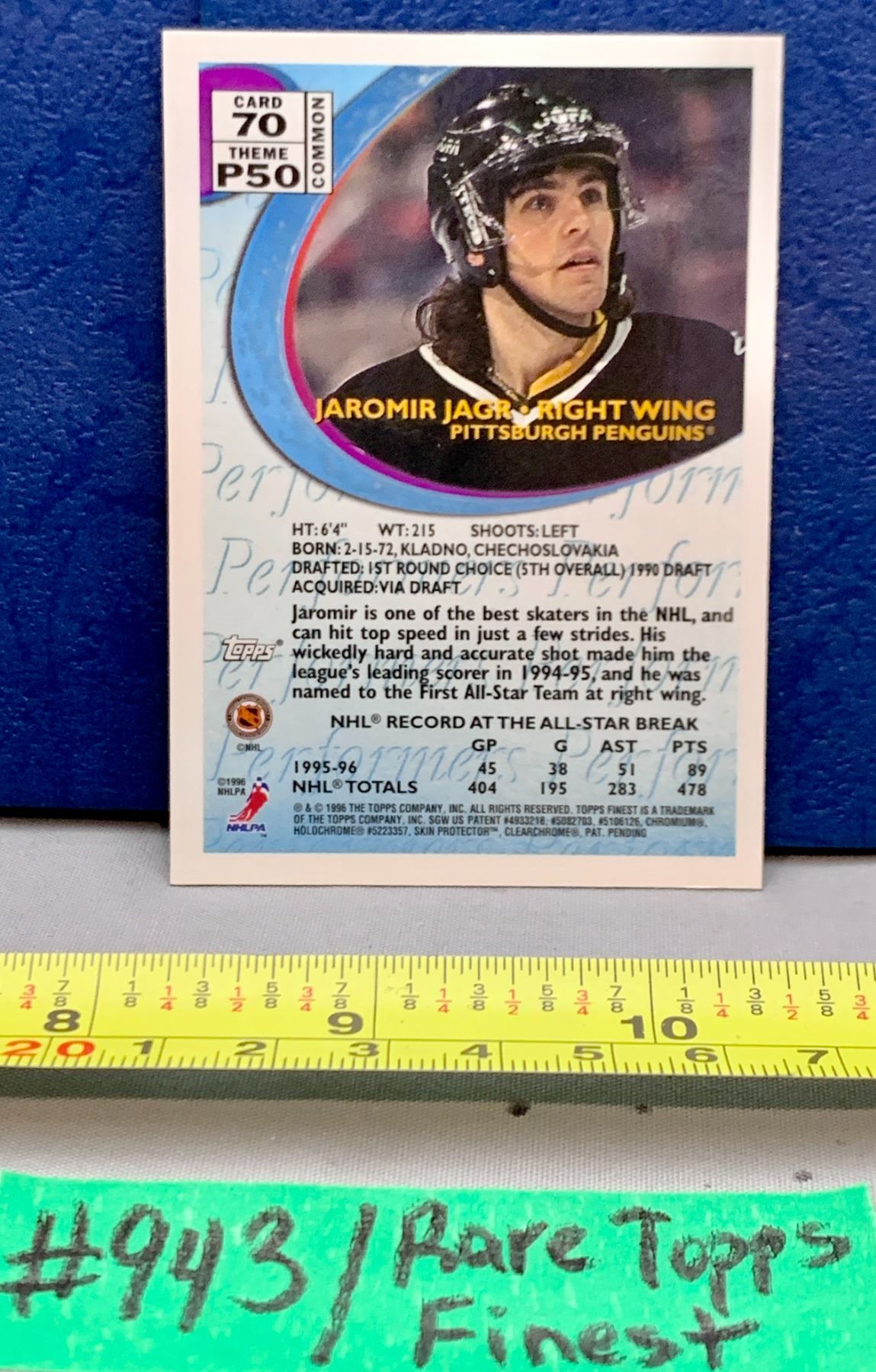 NHL HOCKEY - Rare Topps Finest Unpeeled J Jagr Card