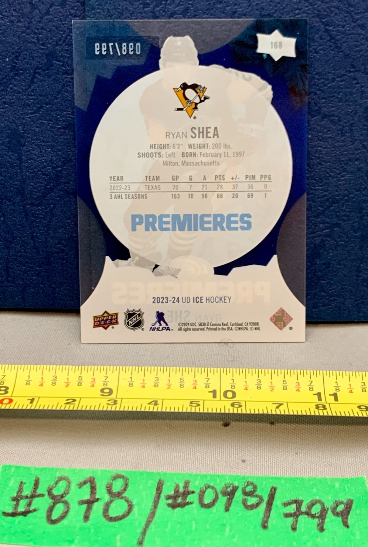 NHL HOCKEY - Ryan Shea Ice Premiers Clear Cut # 098/799