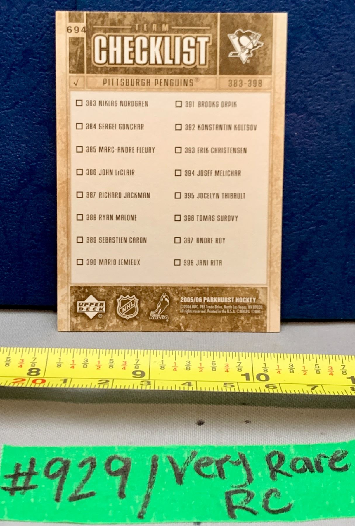 NHL HOCKEY - Sidney Crosby Rare Parkhurst Team Checklist Rookie Card