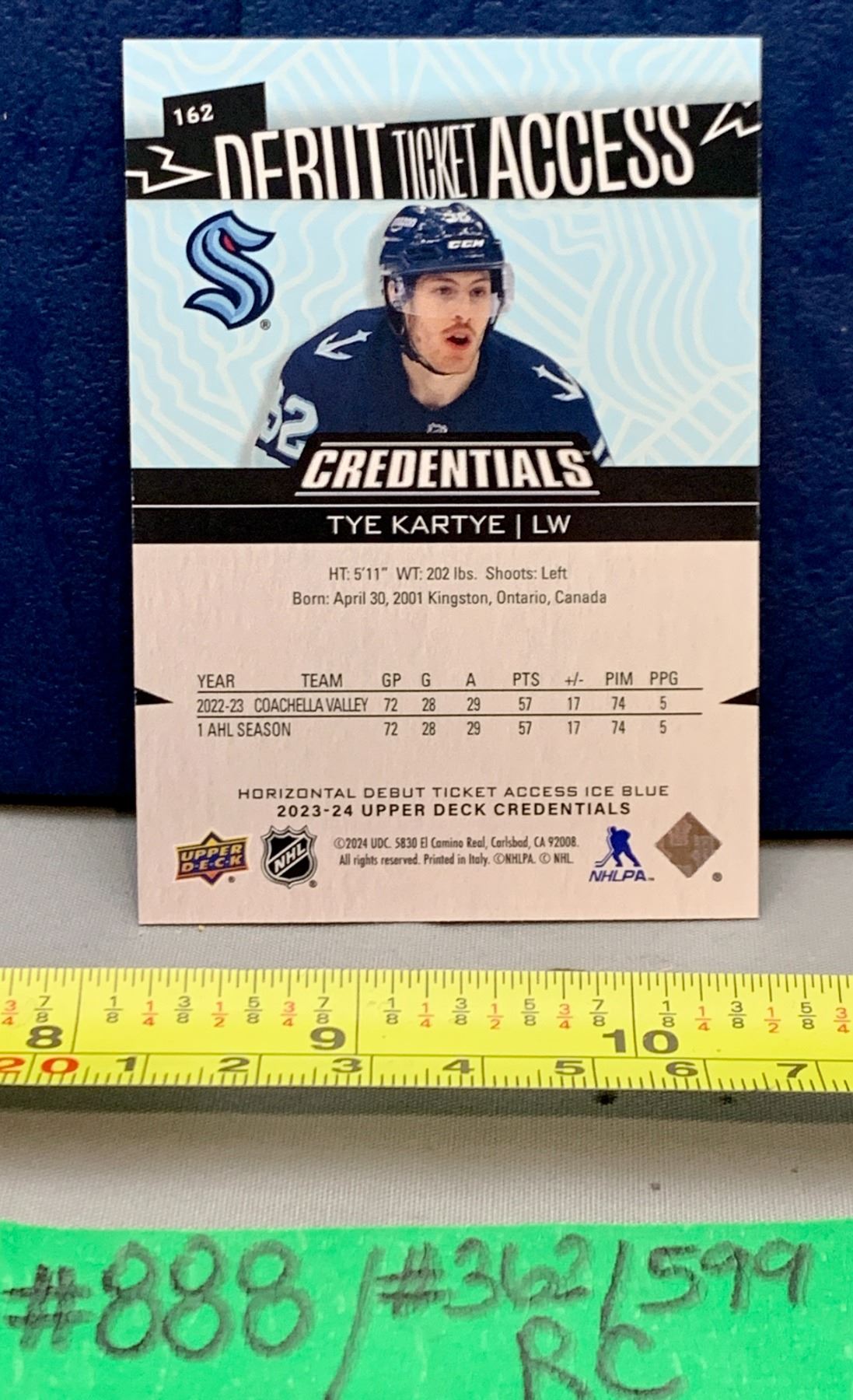 NHL HOCKEY - Tye Kartye Silver Sparkler #362/599 Rookie Card