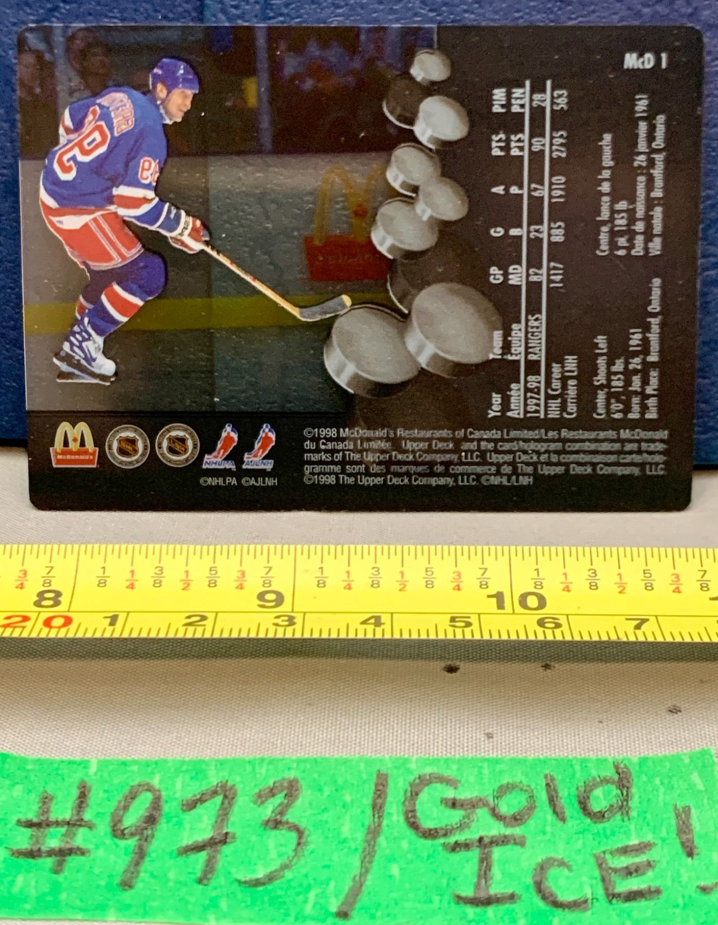 NHL HOCKEY - Wayne Gretzky Rare McDonalds GOLD Ice Card