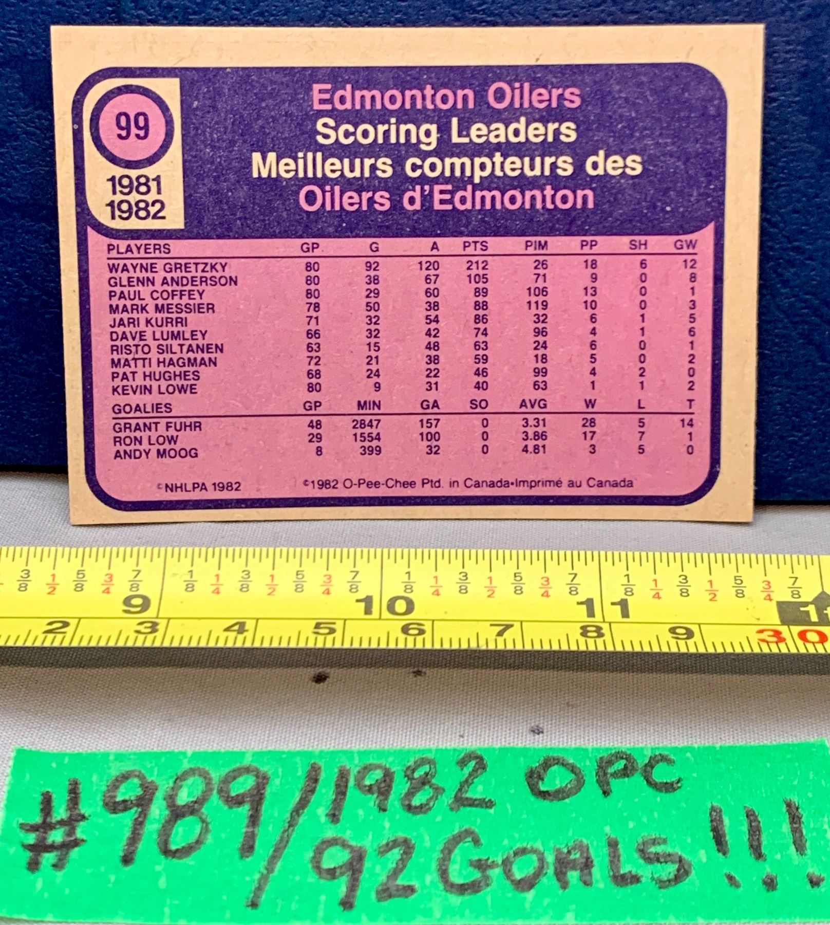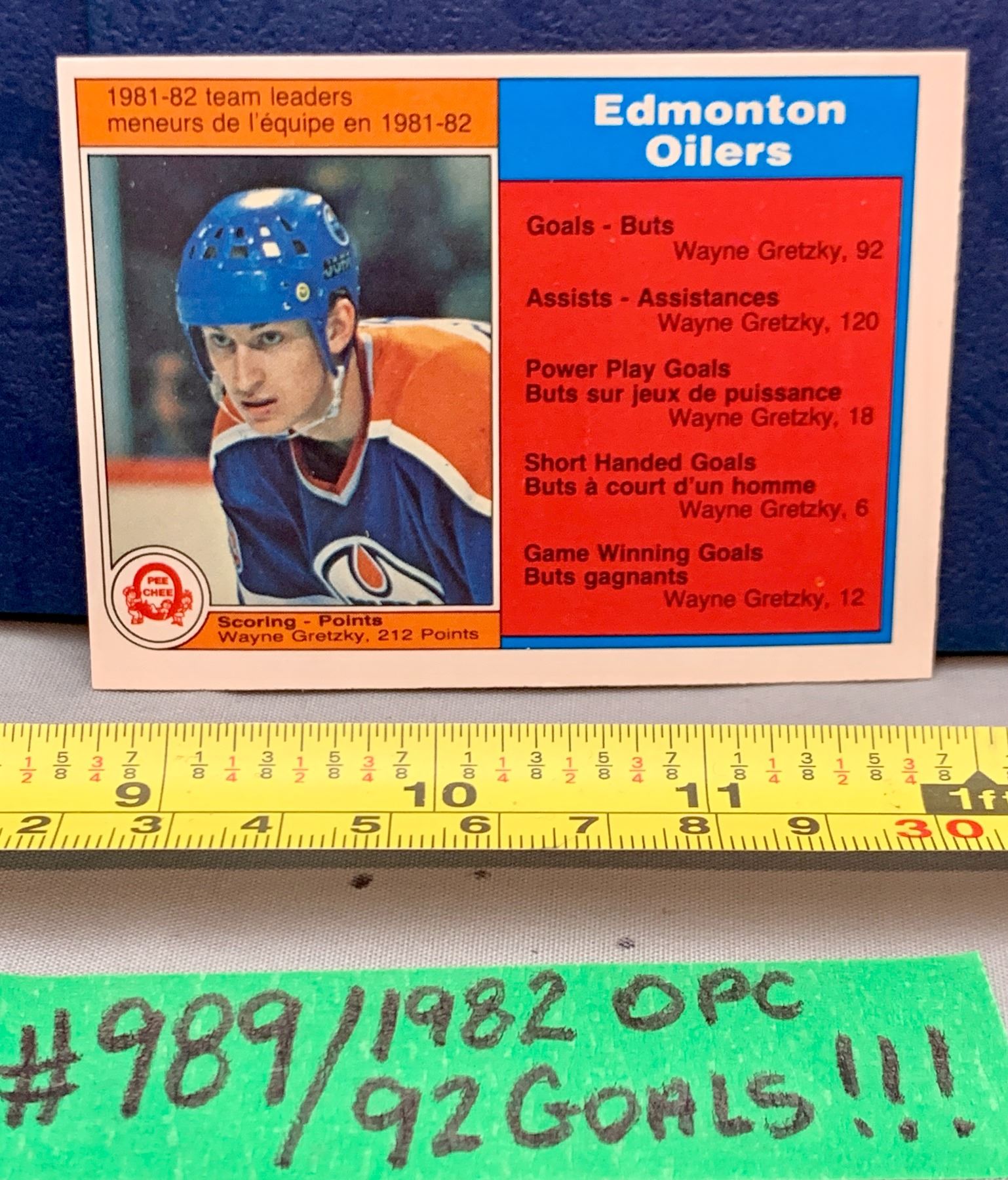 NHL HOCKEY - Wayne Gretzky Vintage OPC 1982 "92 Goals!" Rare Card
