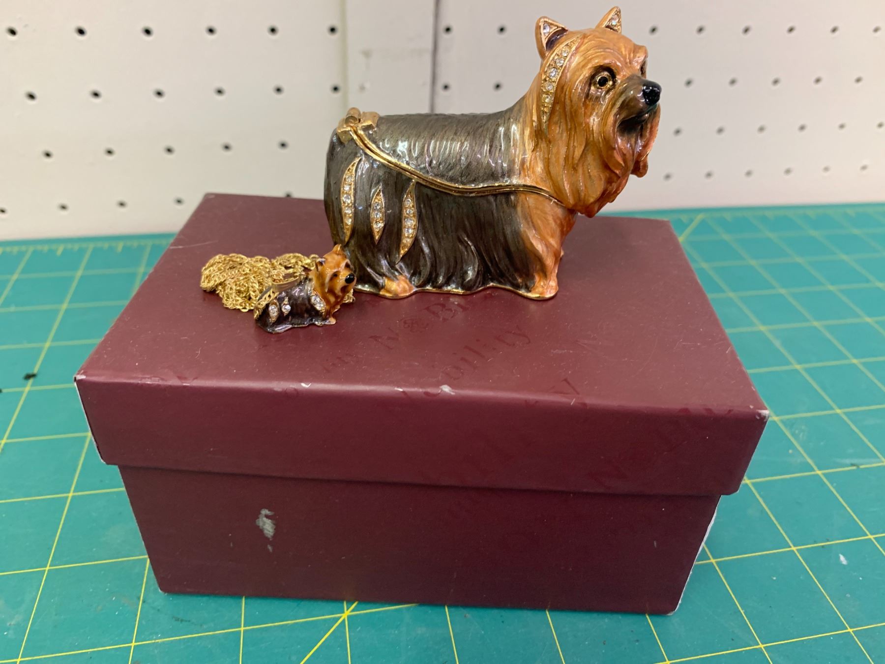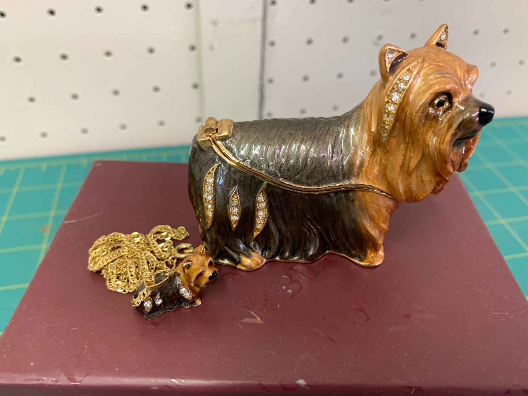 NOBILITY ENAMEL DOG TRINKET BOX AND MATCHING PENDANT
