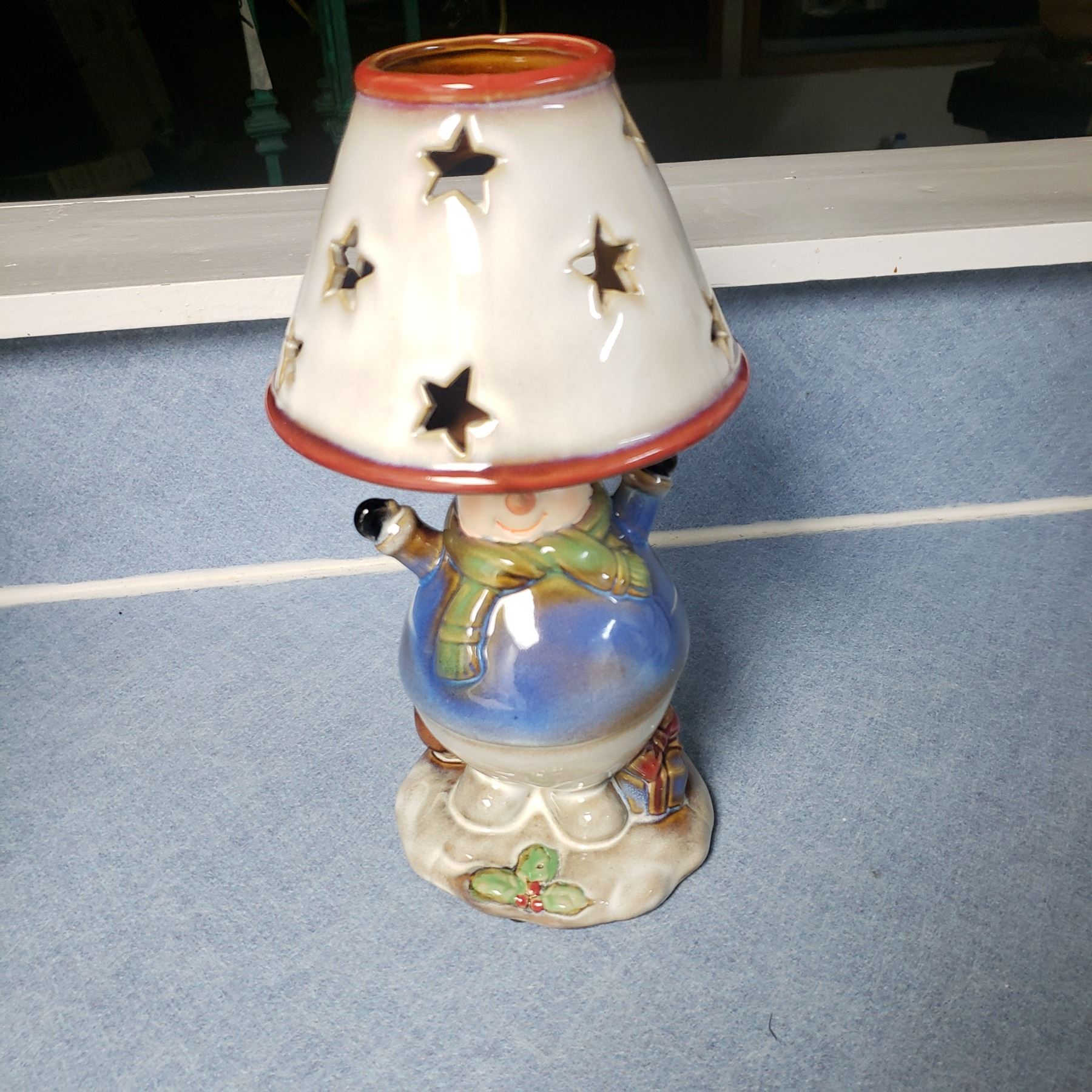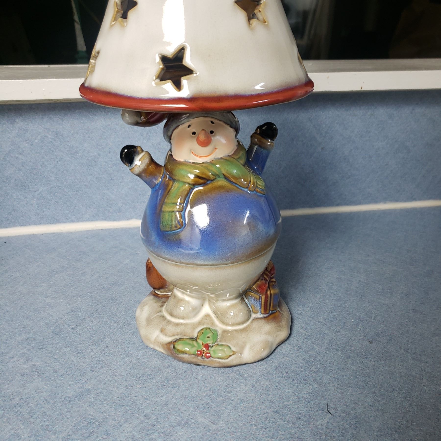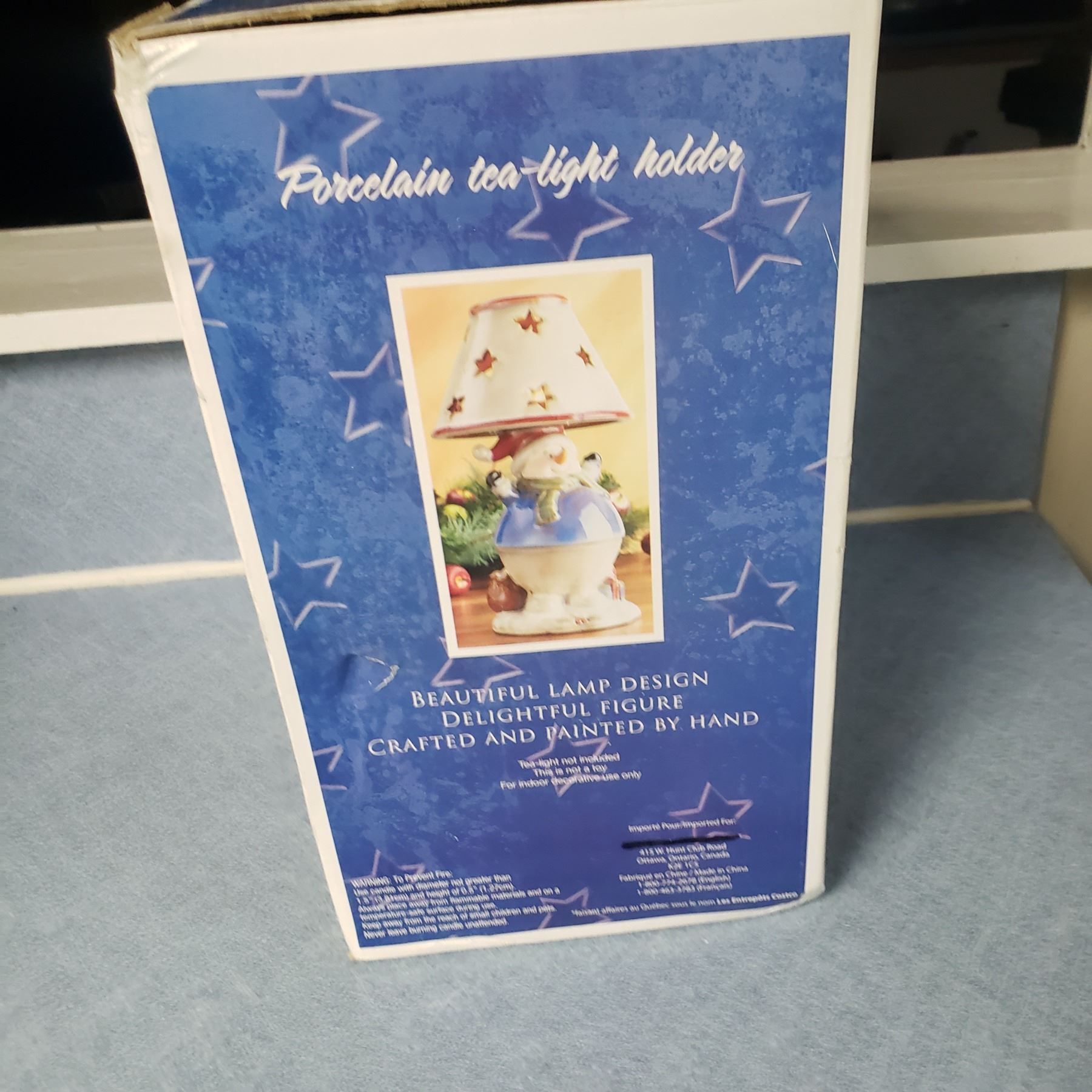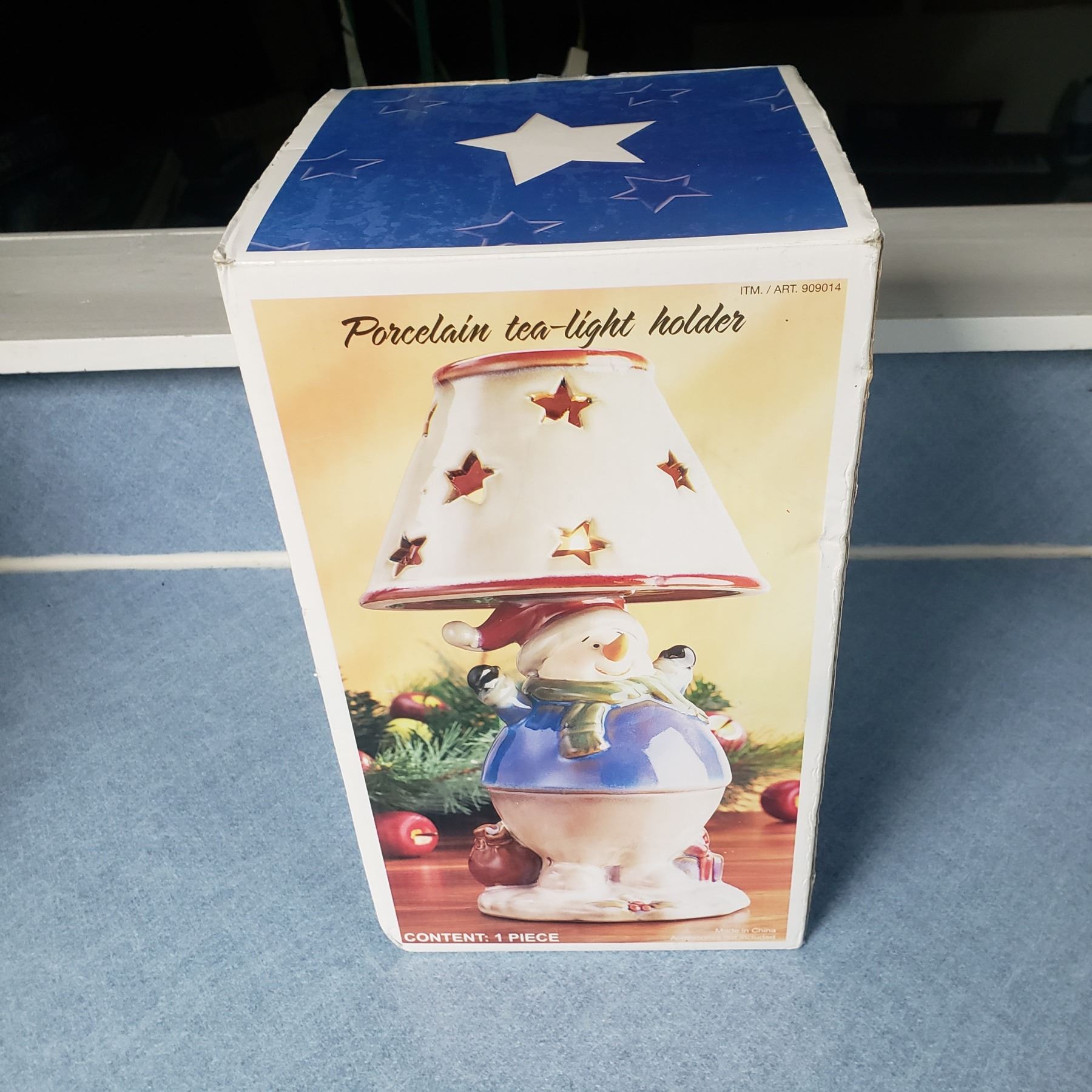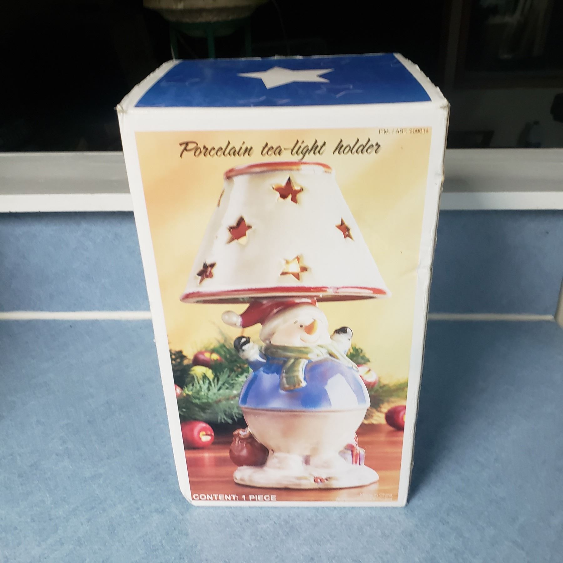 NOS Porcelain Christmas Snowman tea lamp tea light