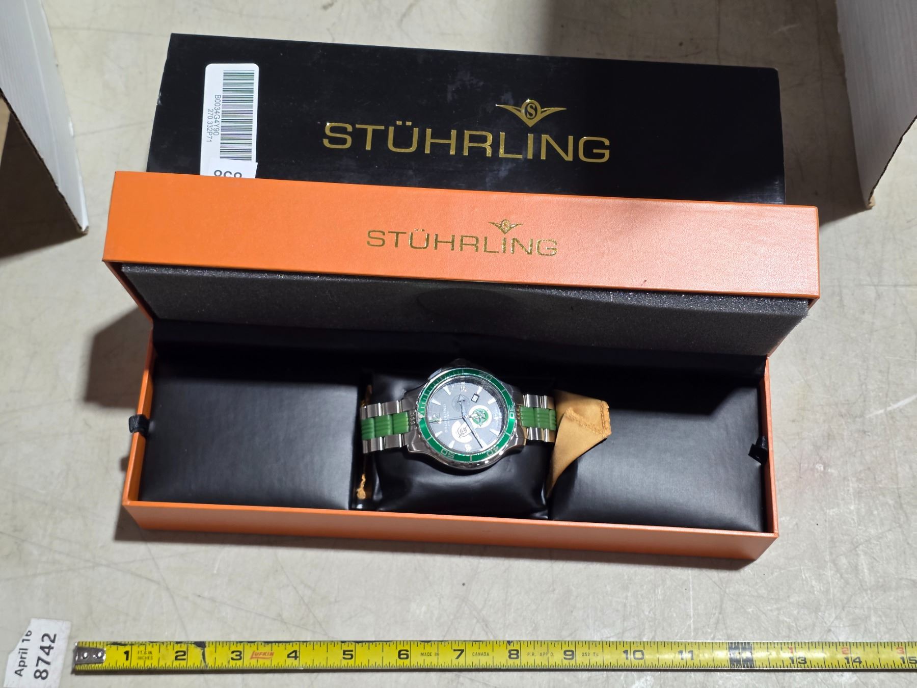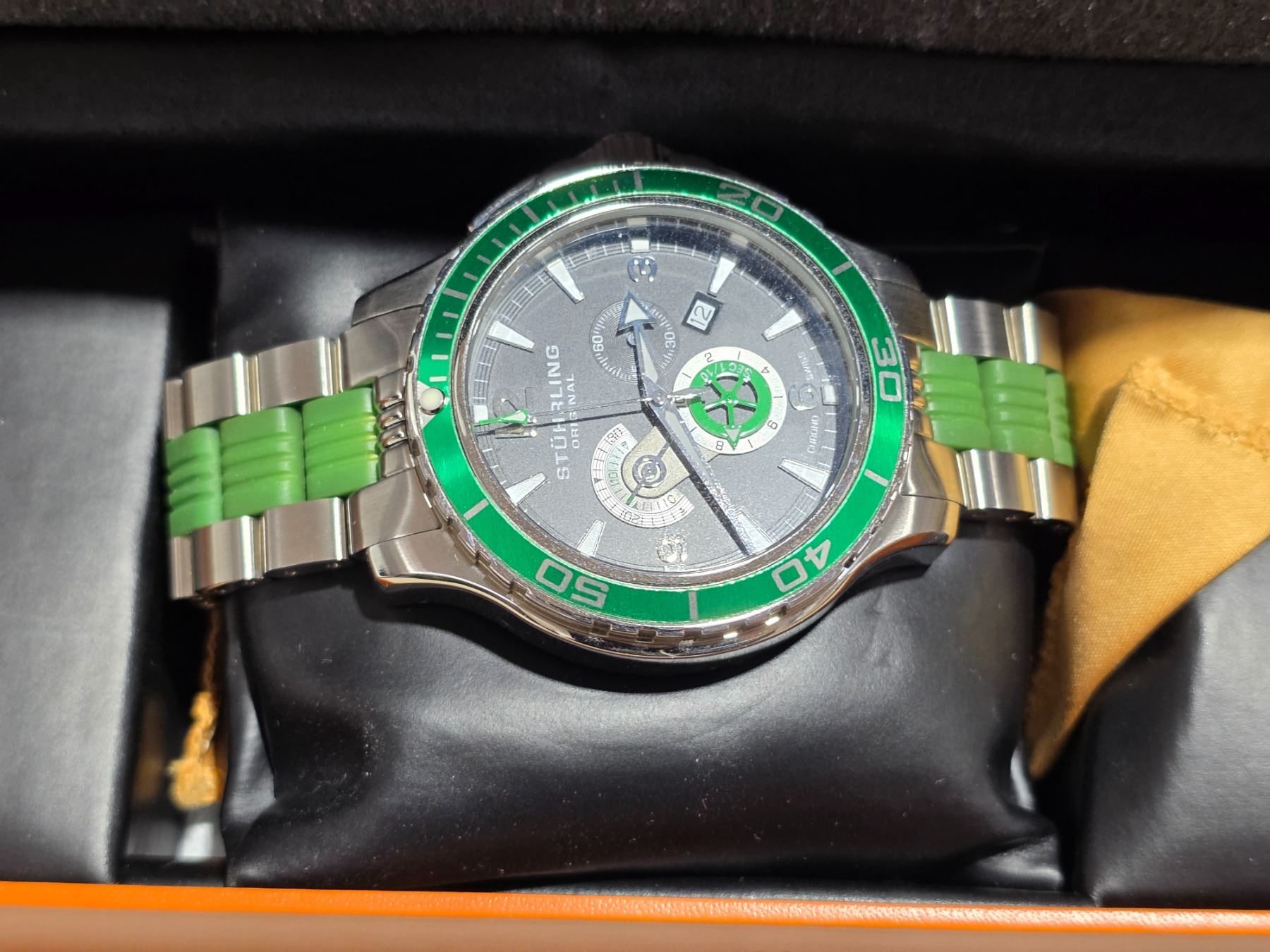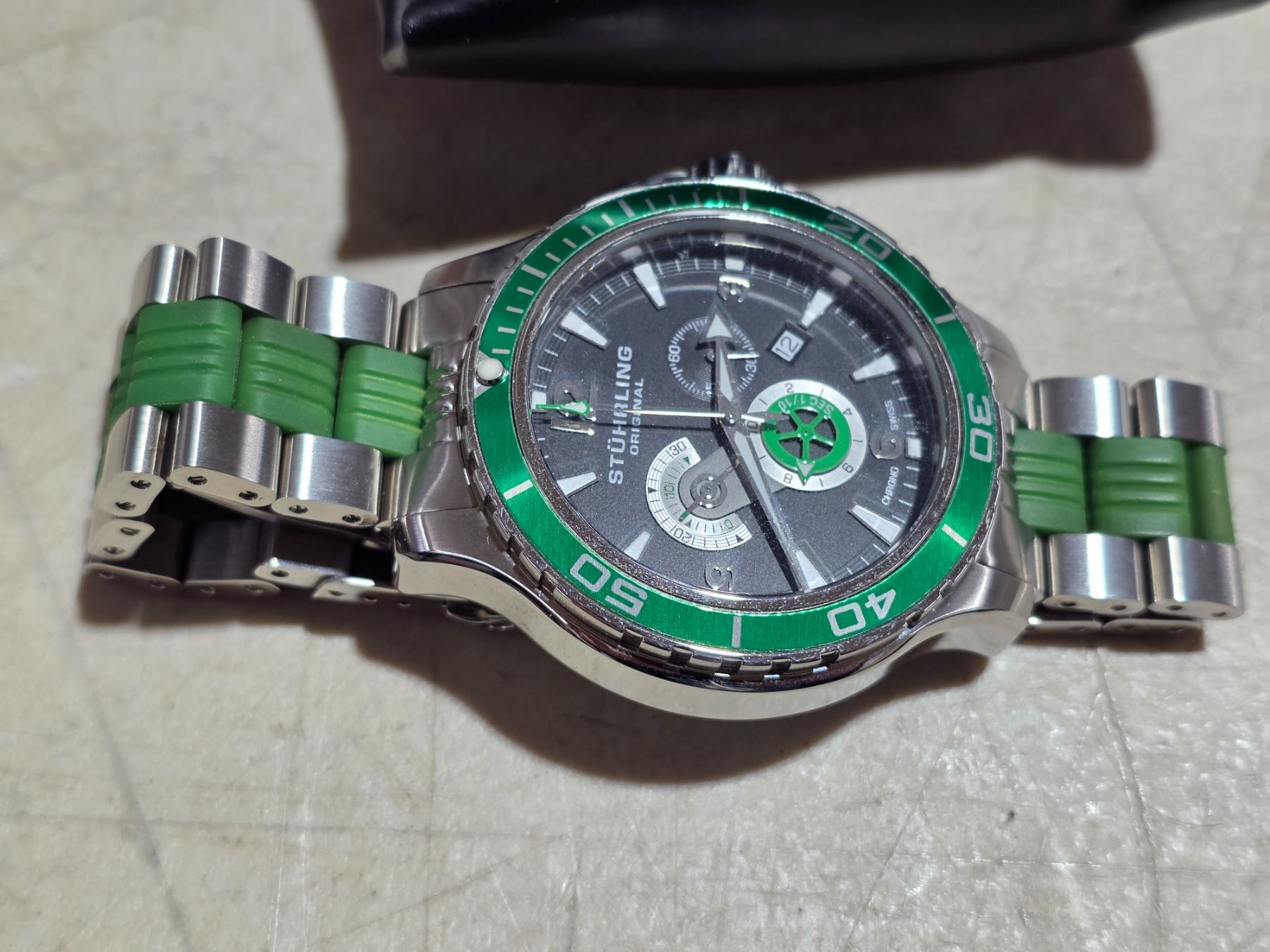 NOS STUHRLING, QTZ CHRONOGRAPH, DATE @4, RUNS AS IT SHOULD