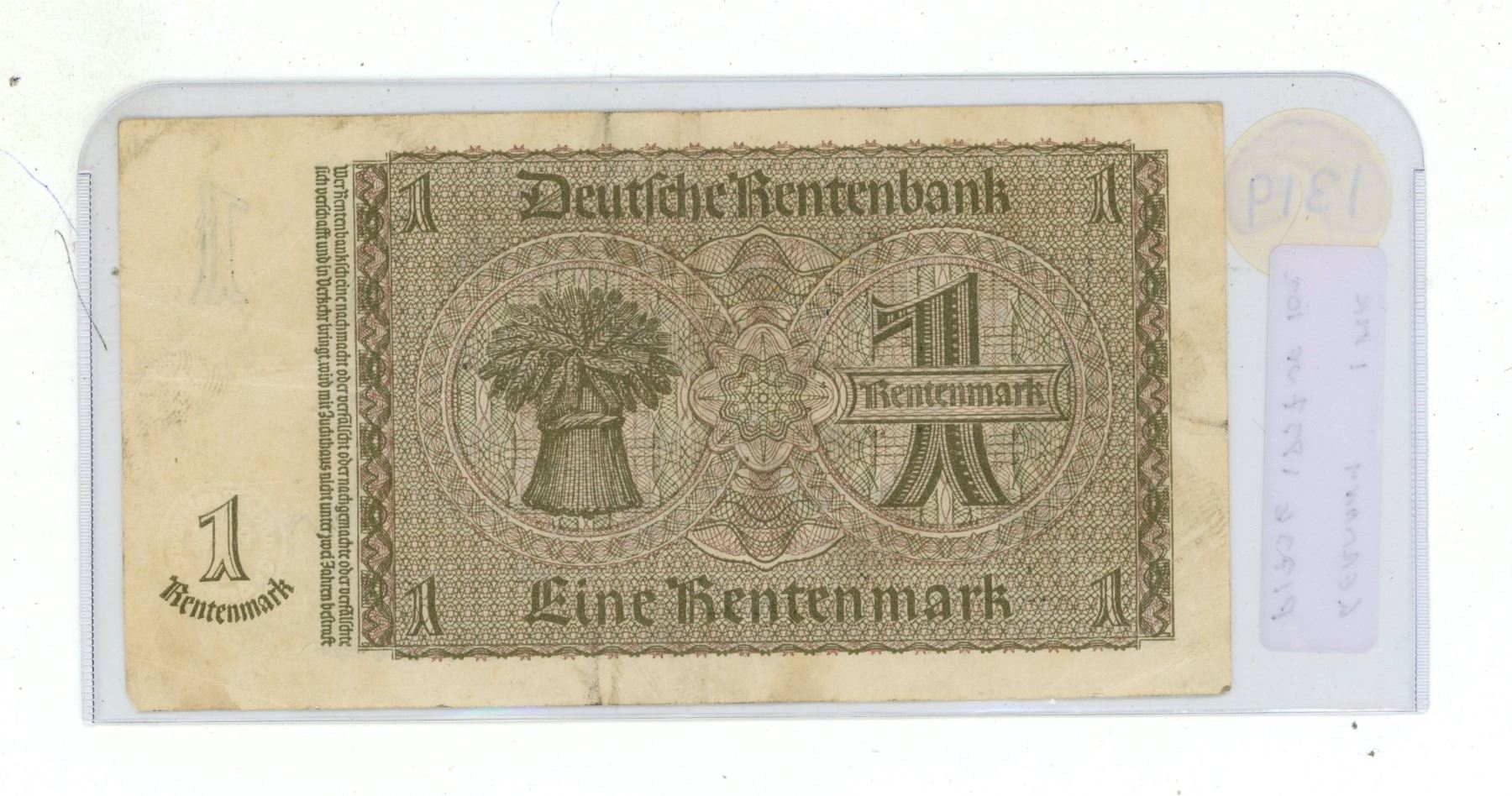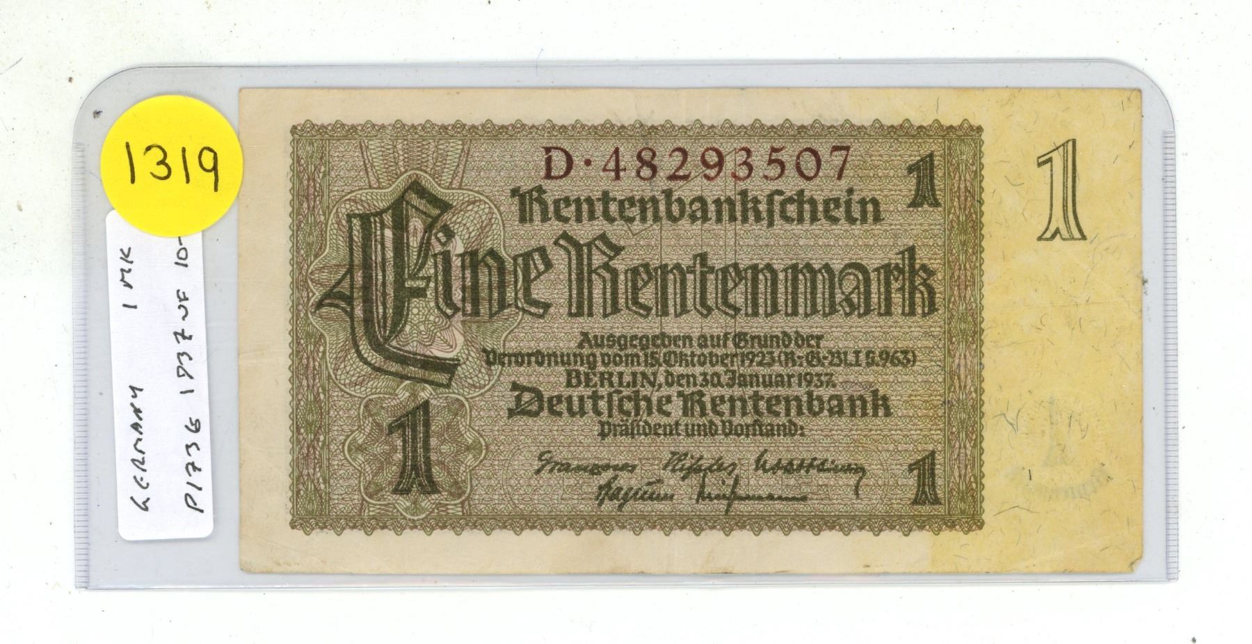 Nazi Germany. 1937 1 Mark Rentenbankschein (Stabilization Bank). VF.