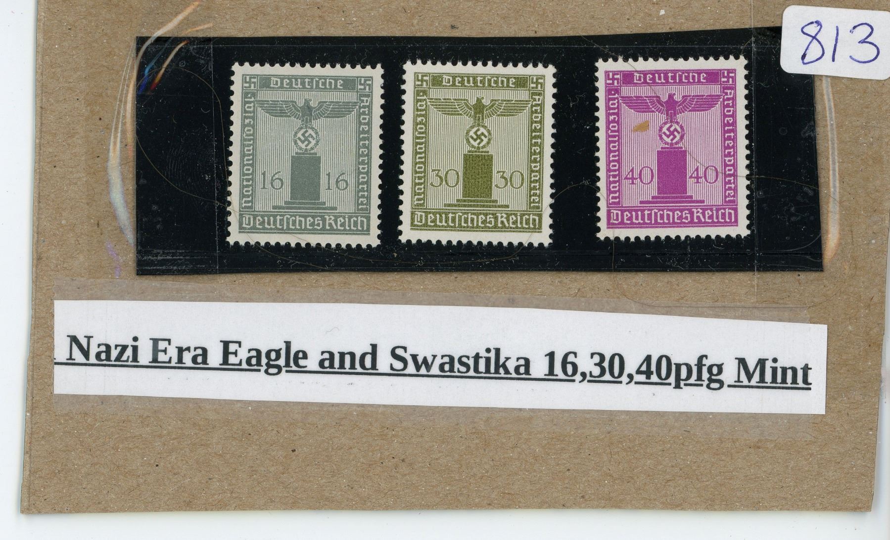 Nazi era eagle and swastika stamps, 16, 30, 40 pfg - mint