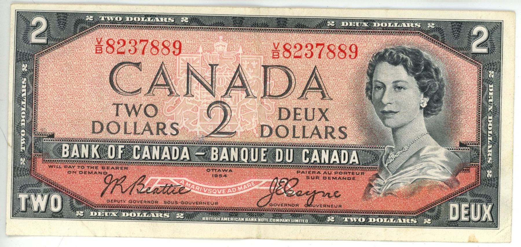 Near Uncirculated 1954 Canada $2 Bill - V/B8237889 Beattie/Coyne