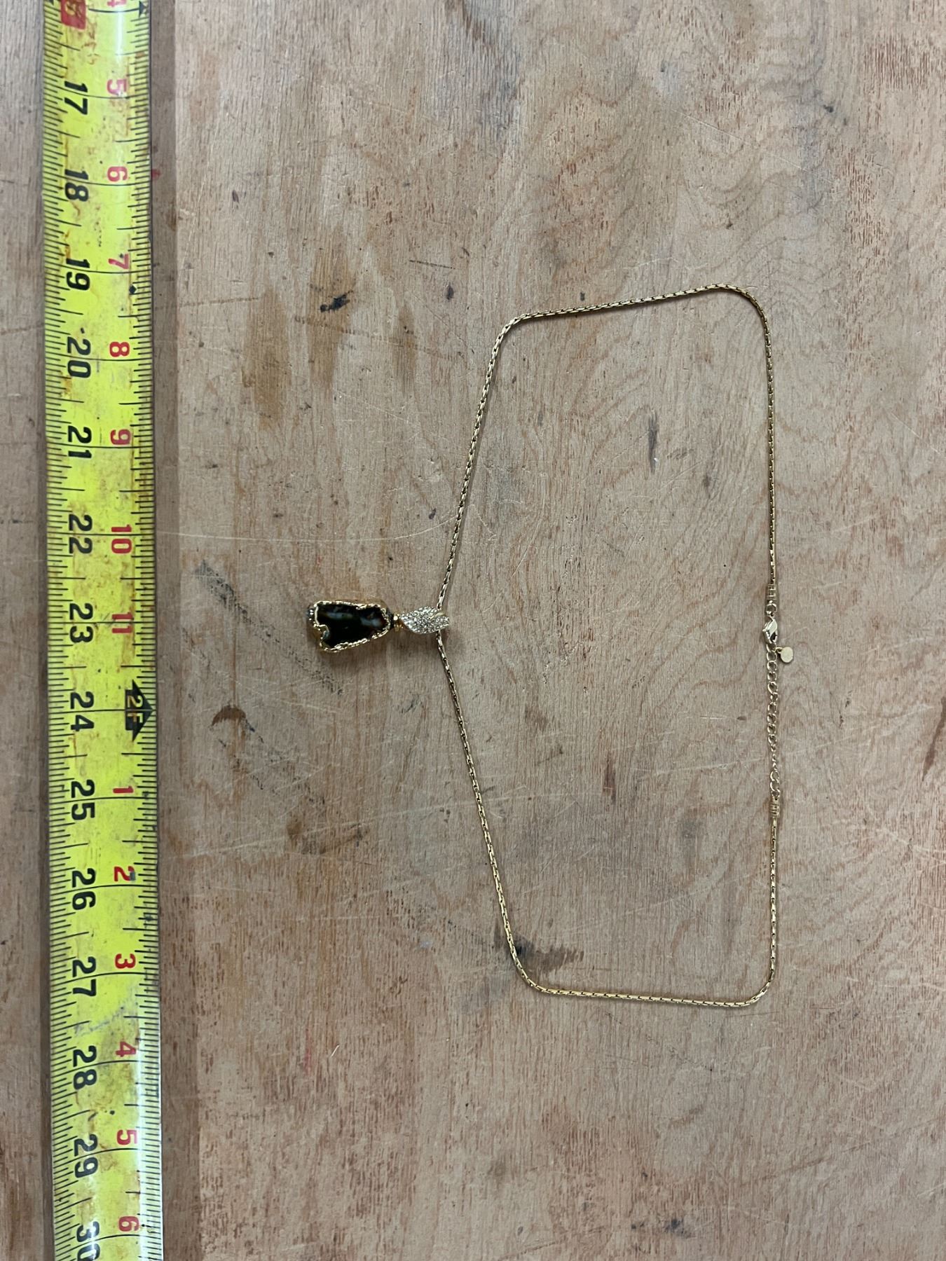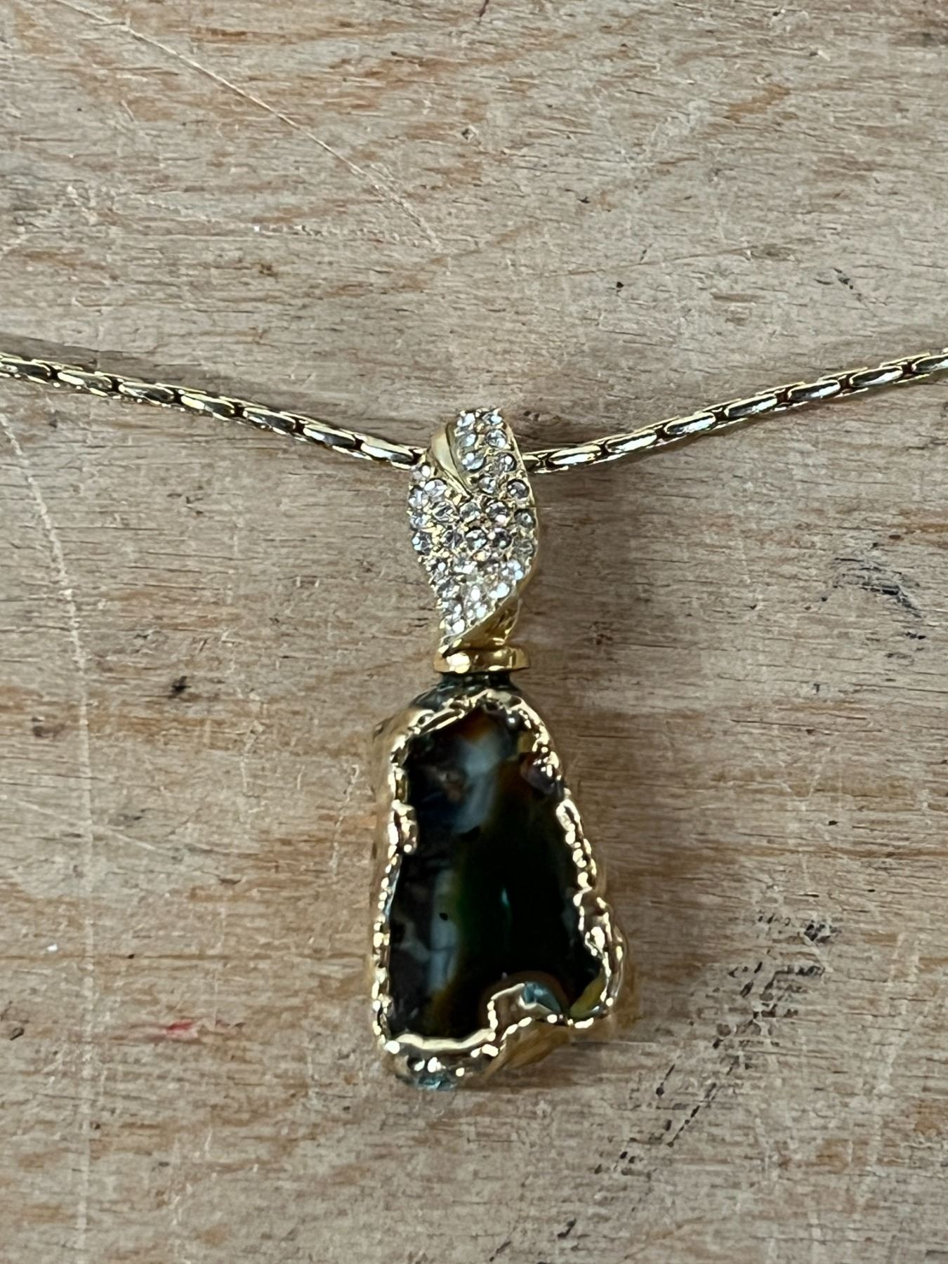 Necklace w/ Dark Gemstone Pendant + Diamond Accents