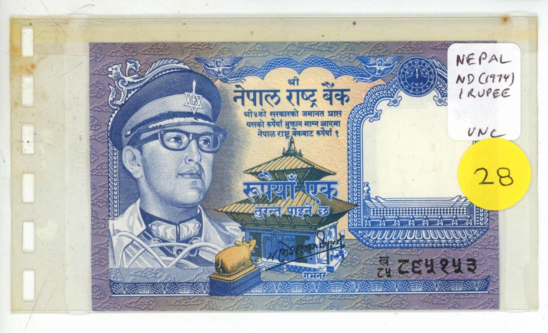 Nepal. ND (1974) 1 Rupee. Uncirculated.