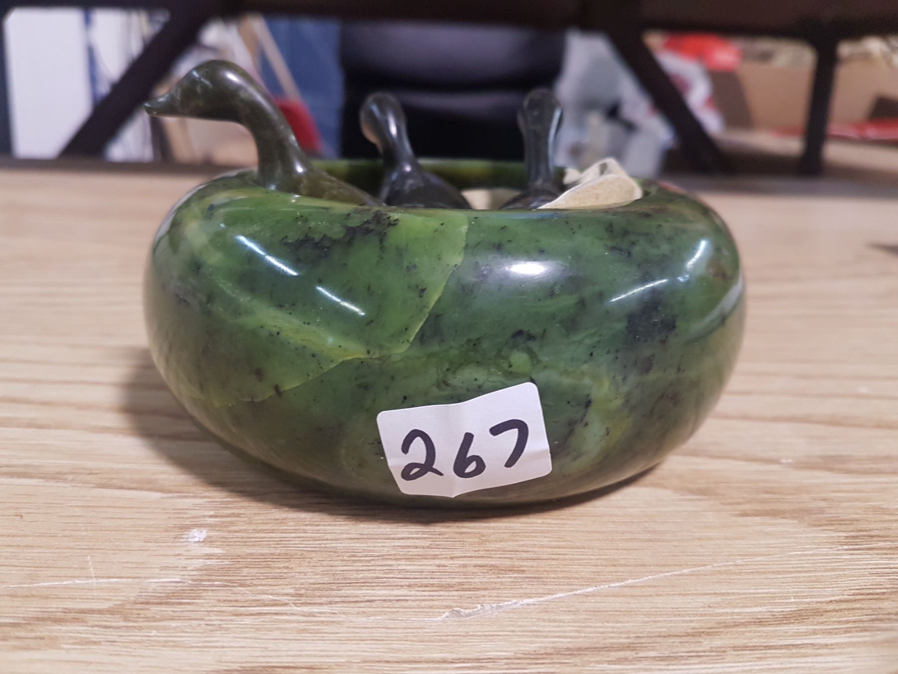 Nephorite Carved Bowl and 3 Carved Nephorite ? Birds