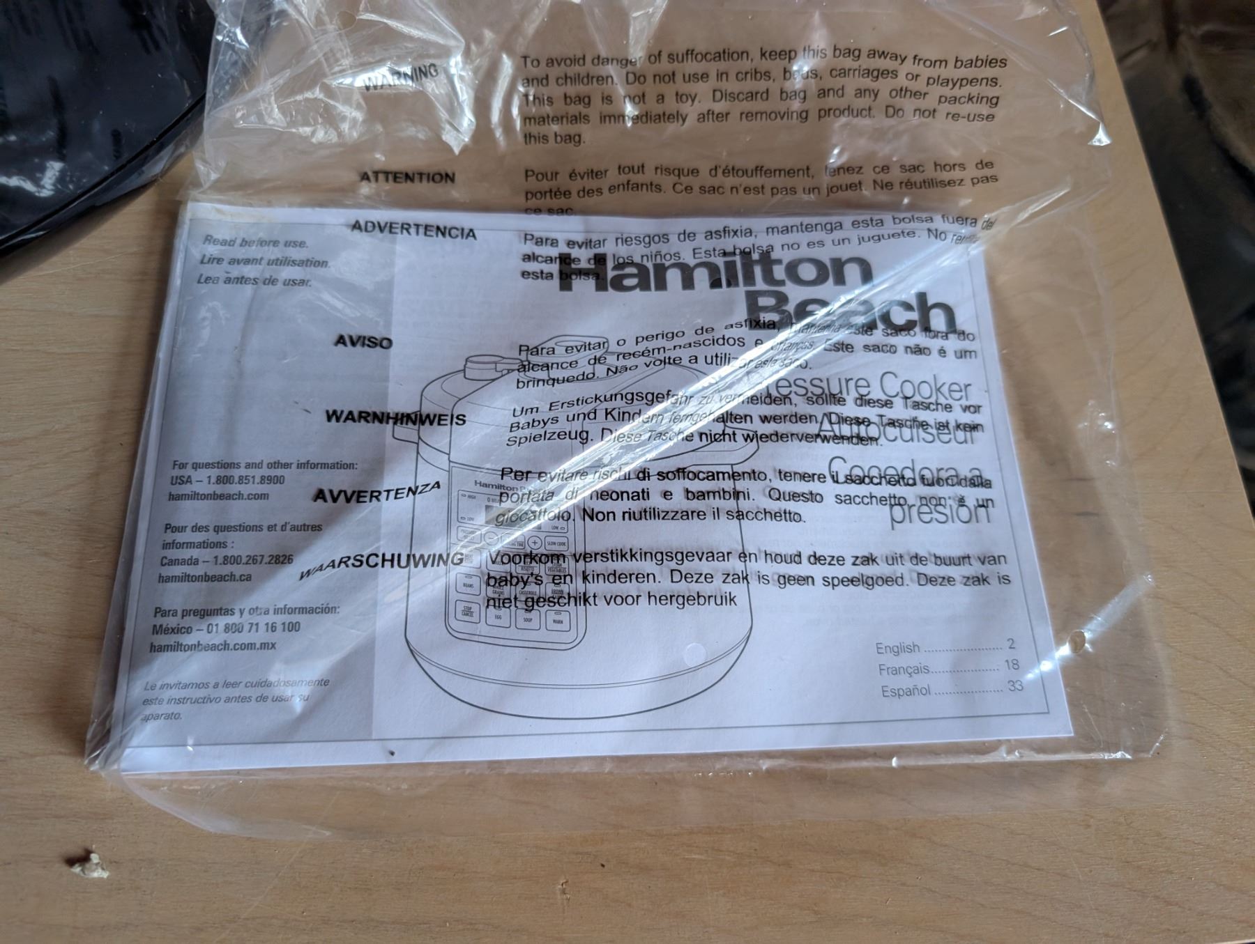 Never Used (New in Box) Hamilton Beach Pressure Cooker