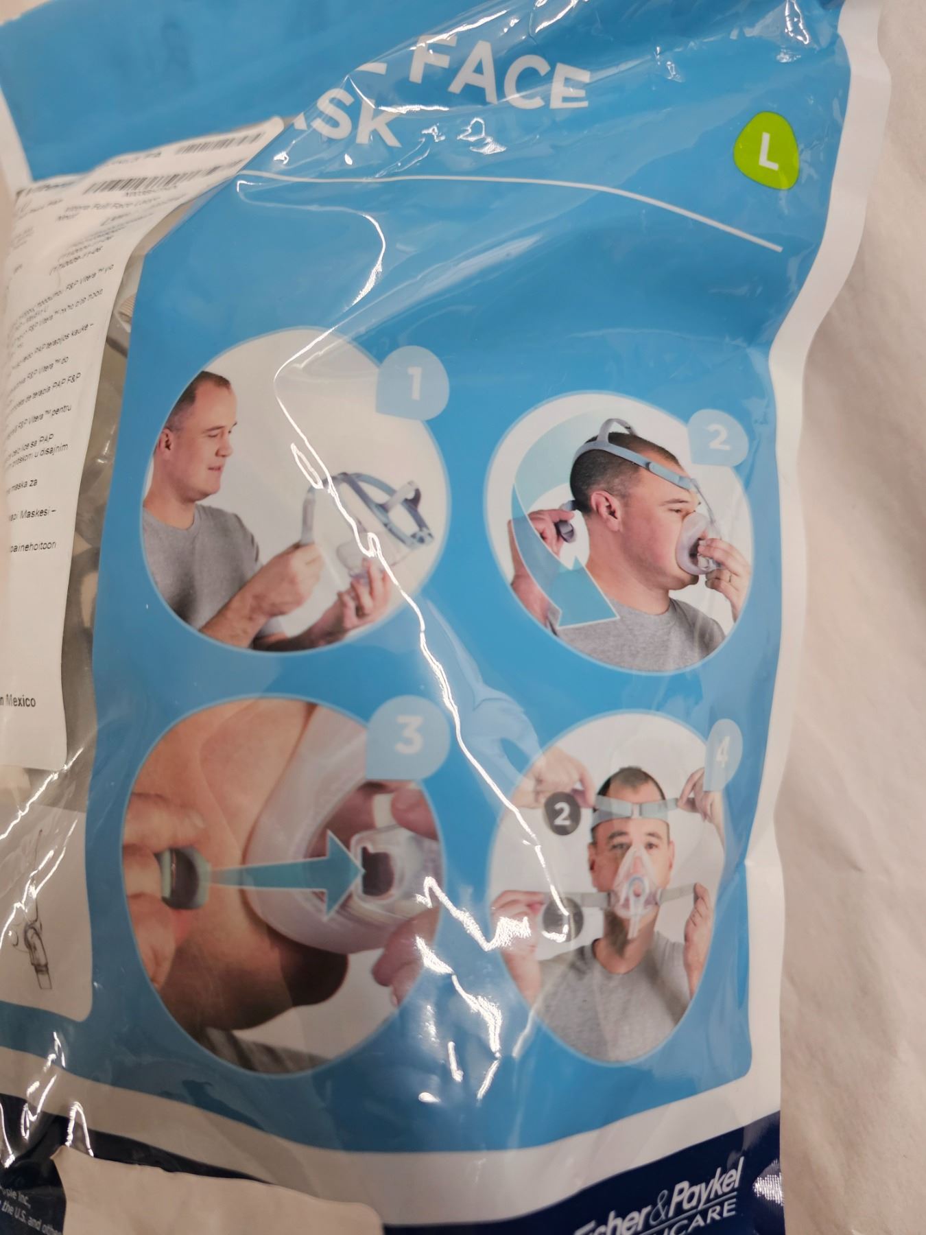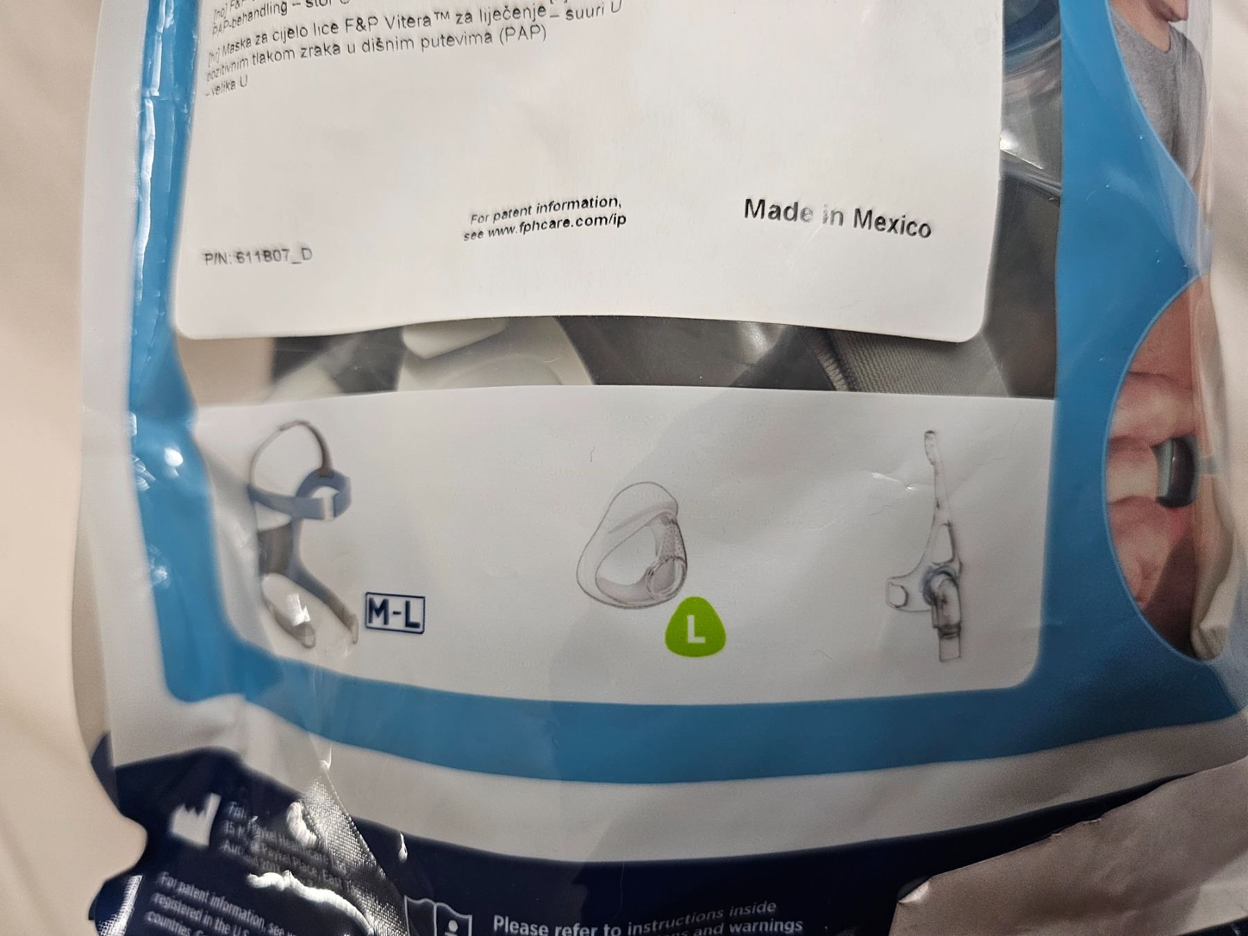 Never used, in factory sealed bag: Vitera Full Face Mask for sleep apnea CPAP machines. Size: Large. Compatable with ResMed.