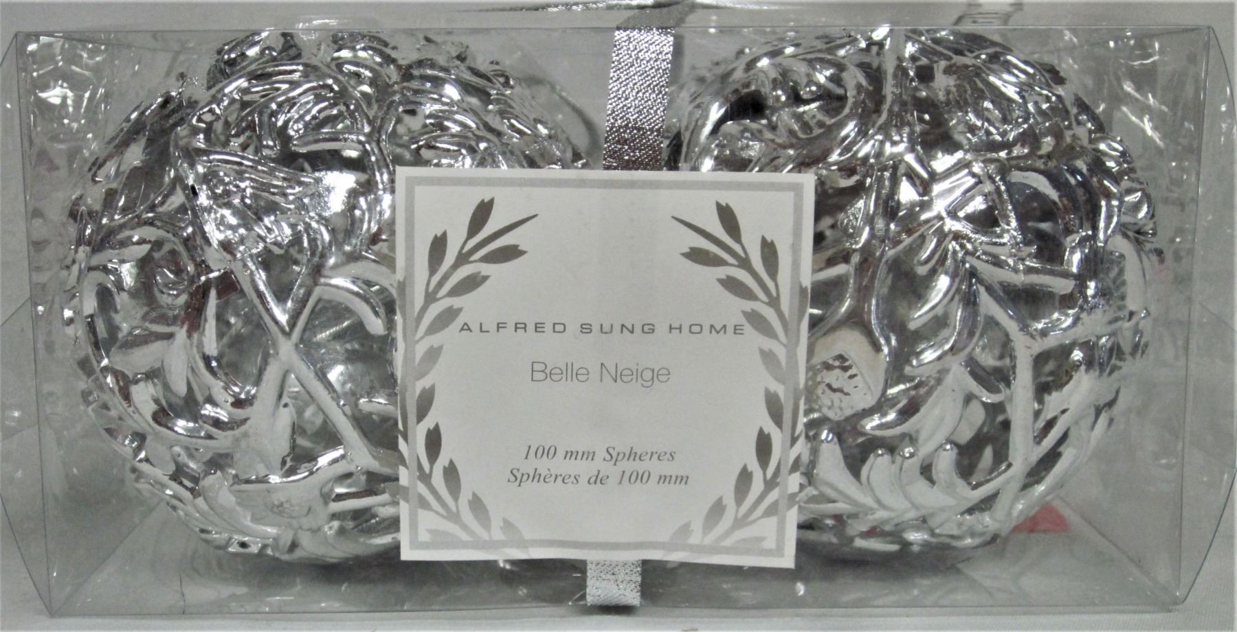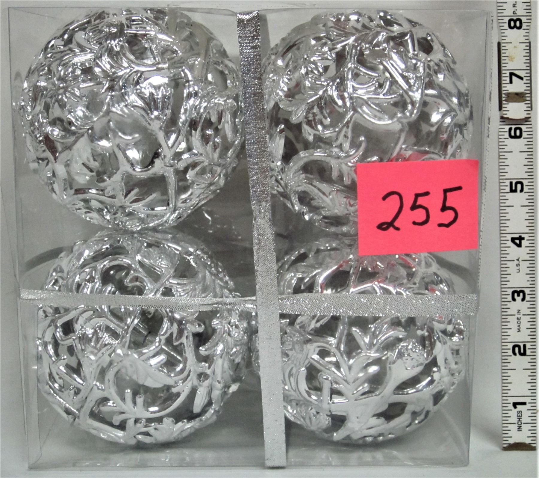 New Boxed set, 4 Alfred Sung 4" Silver XMAS Tree, Fancy Balls