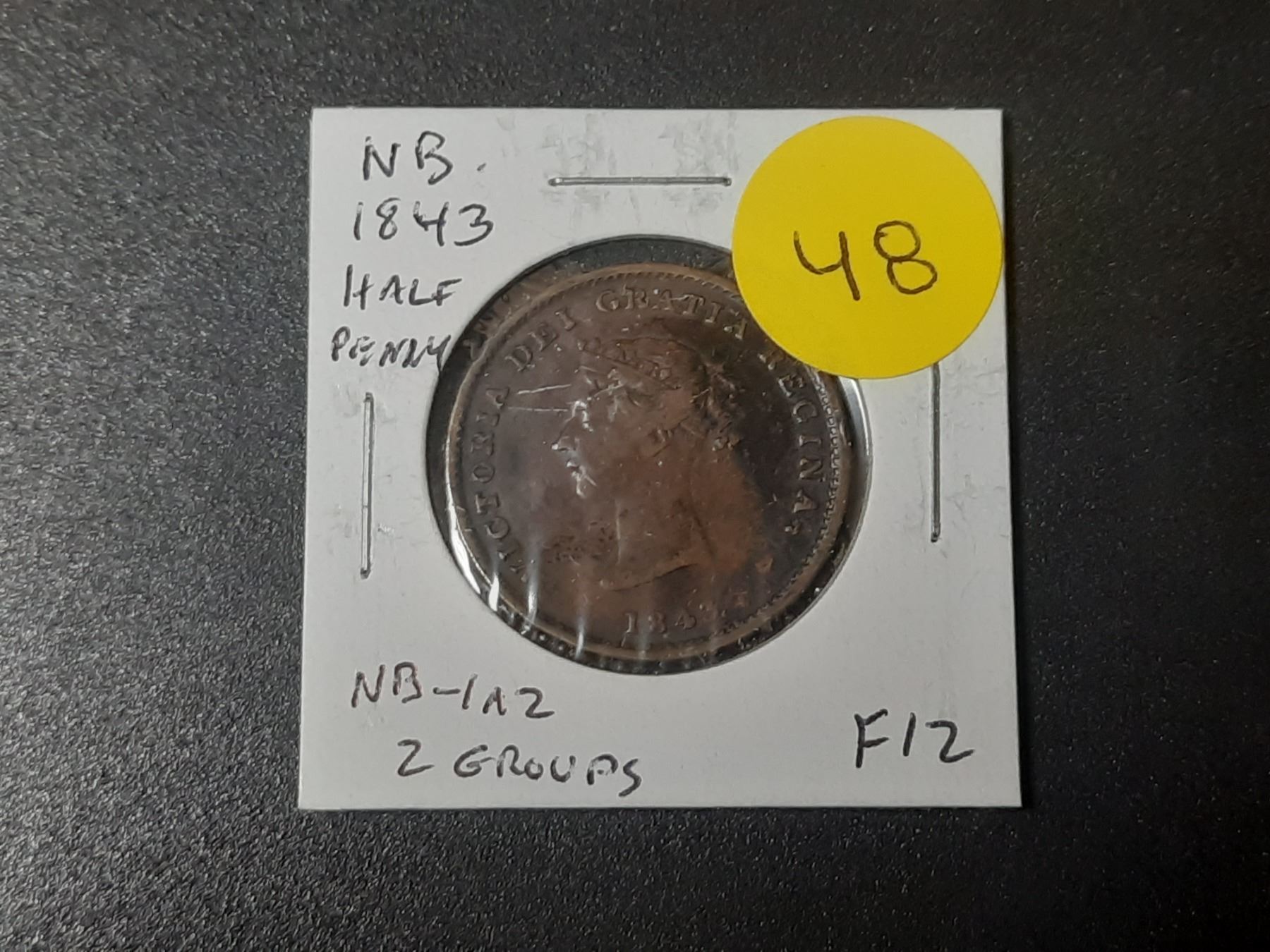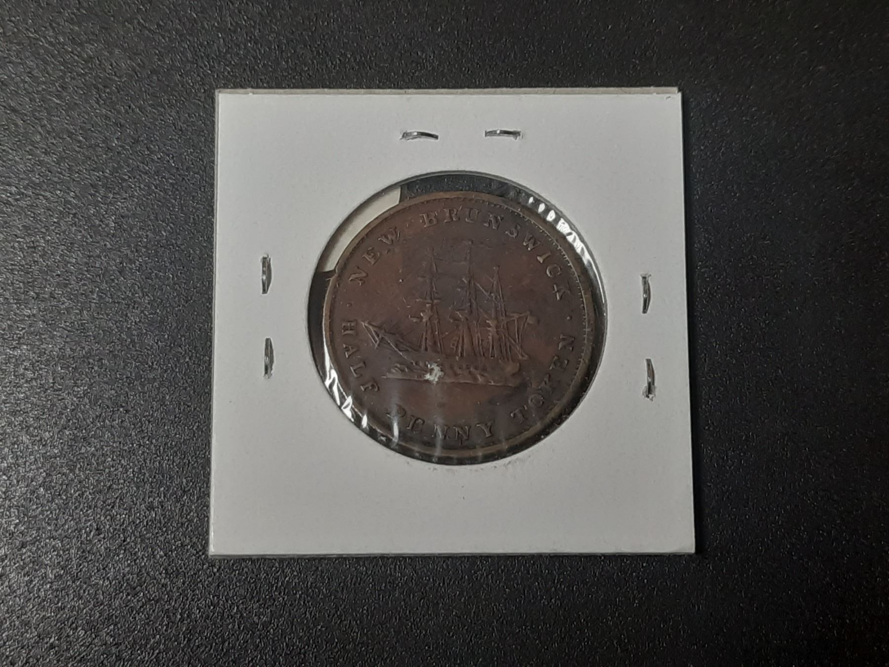 New Brunswick. 1843 Half Penny Pre-Confederation Token. George IV. NB-1A2 with 2 complete groups. Fine.