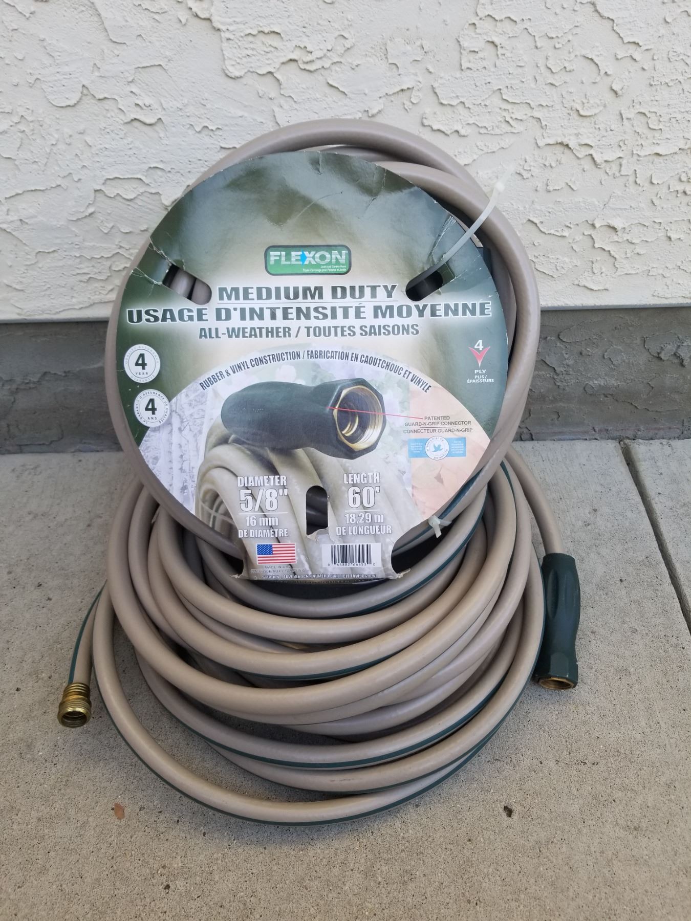 New Flexon Garden Hose, 2 lengths of 60 ft each, 5/8 inch diameter