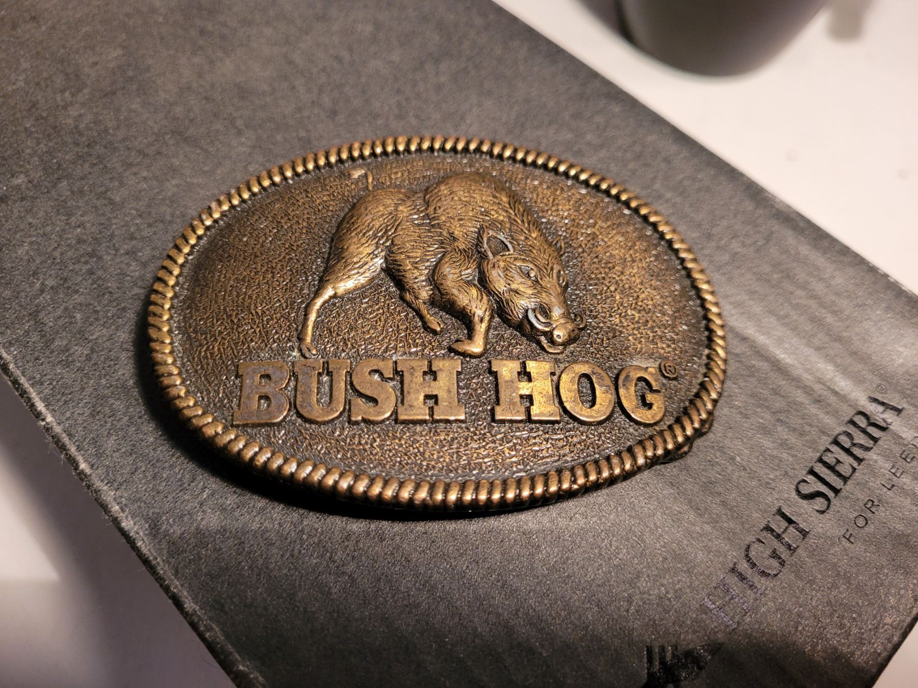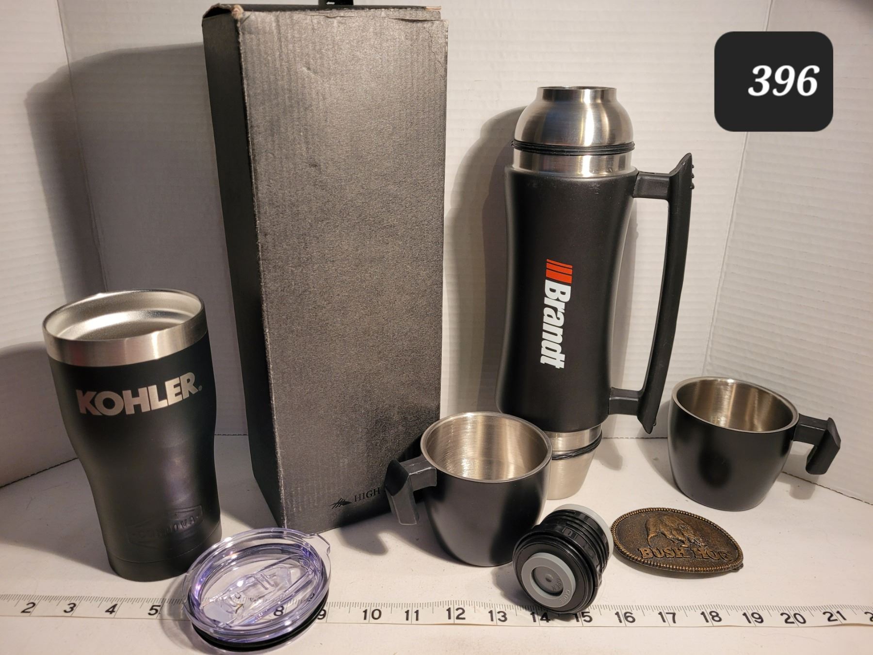 New High Sierra double cup thermos, coffee to go mug & a Bush Hog belt buckle