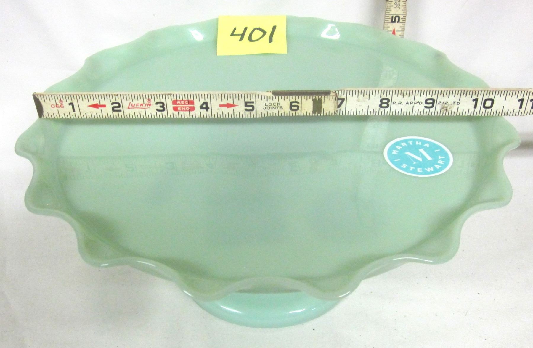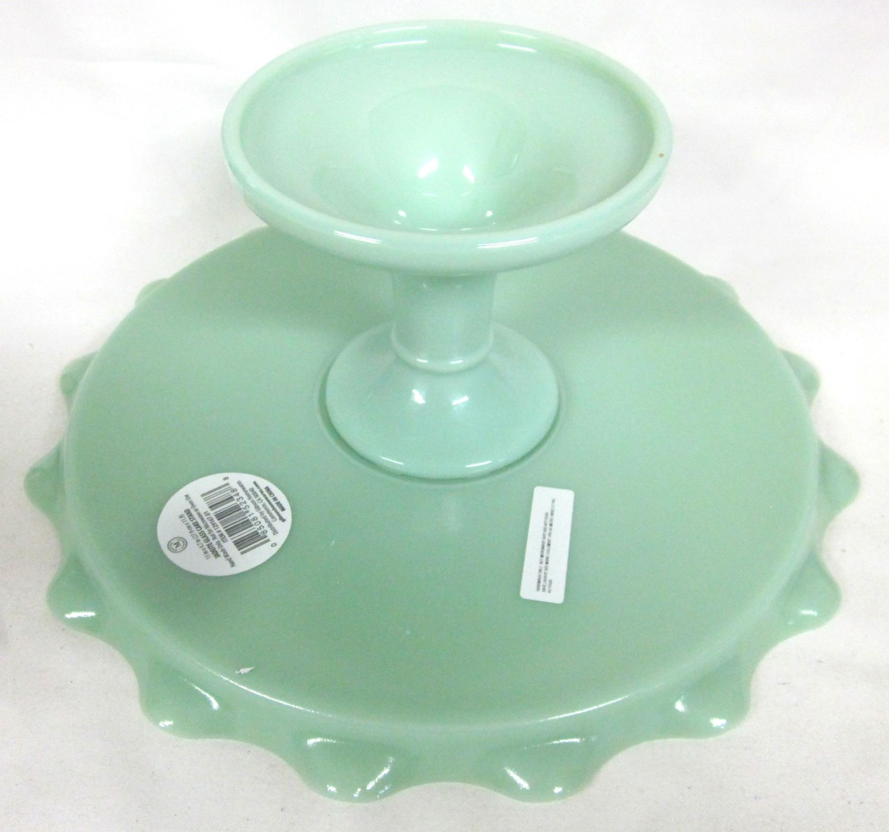New "Martha Stewart" 11"x4.5" jadite scalloped edge glass pedestal cake stand