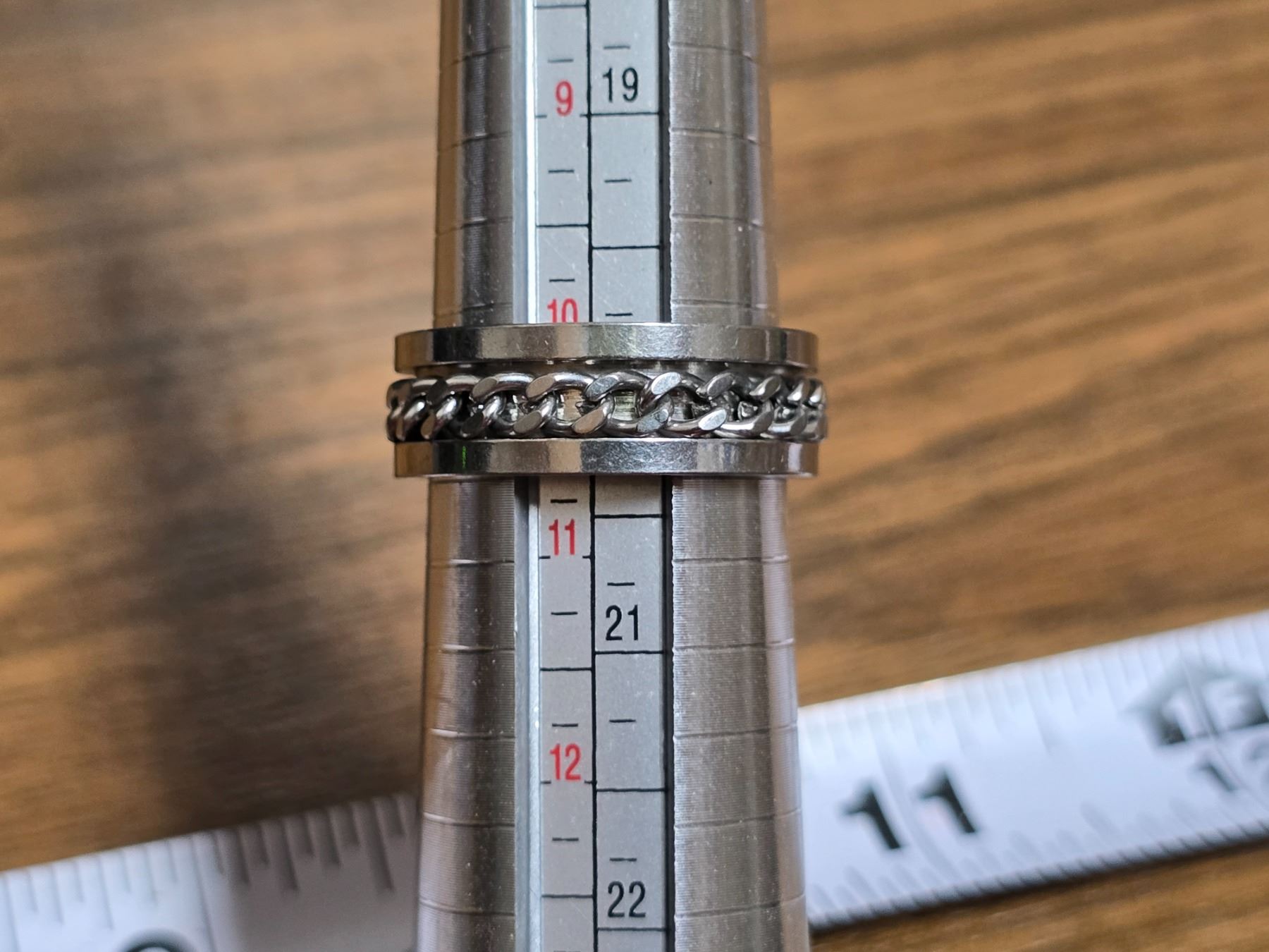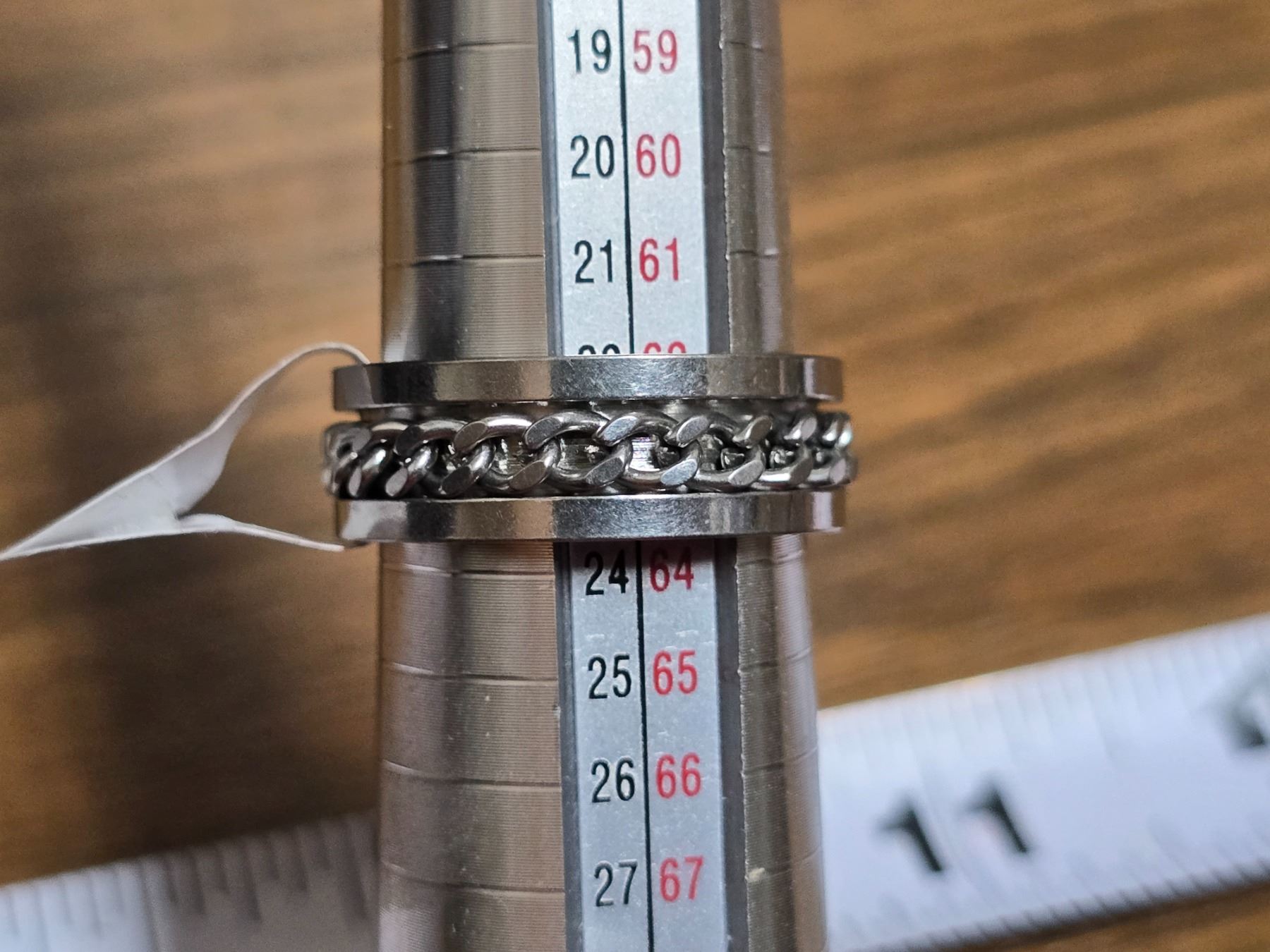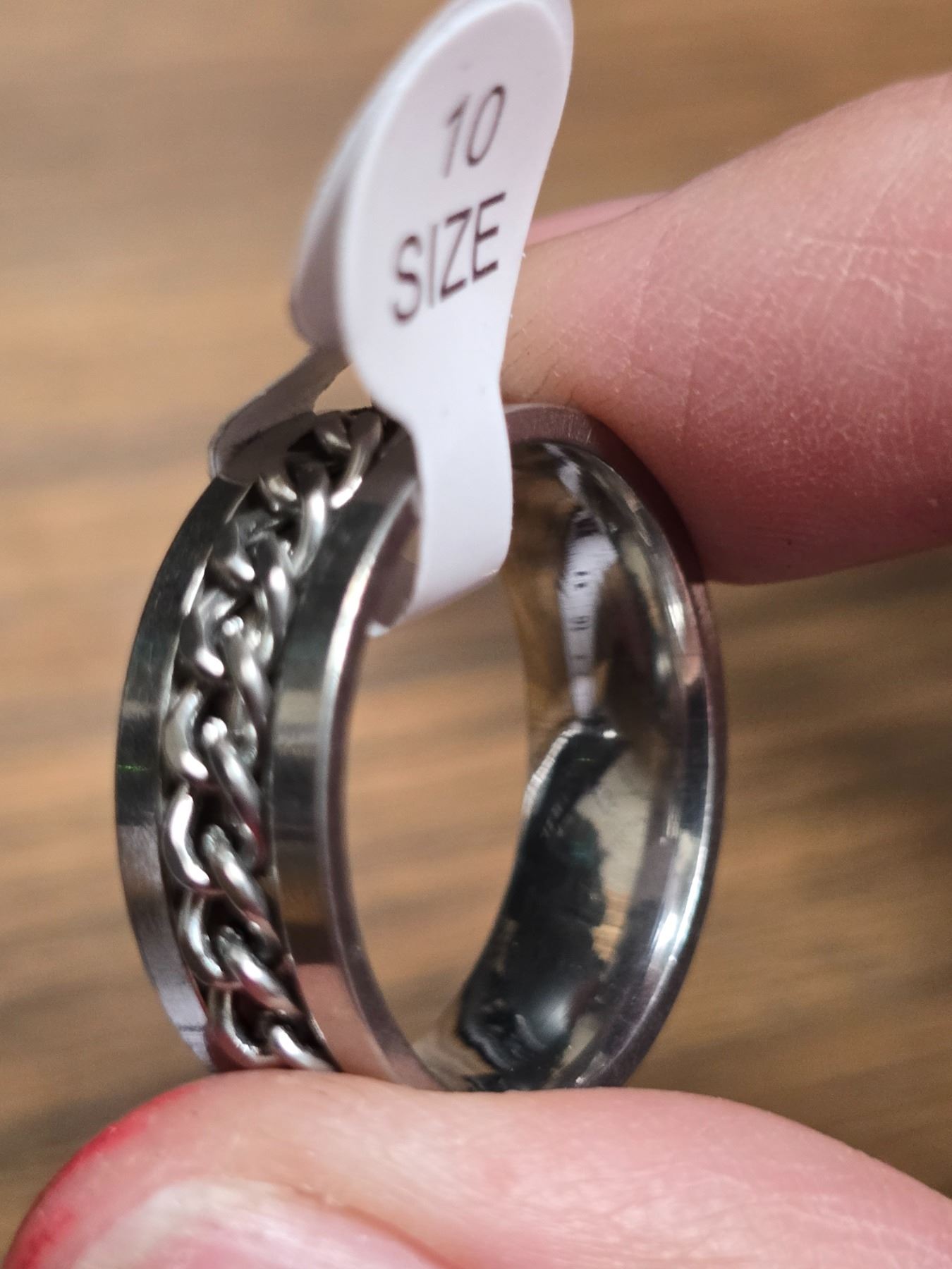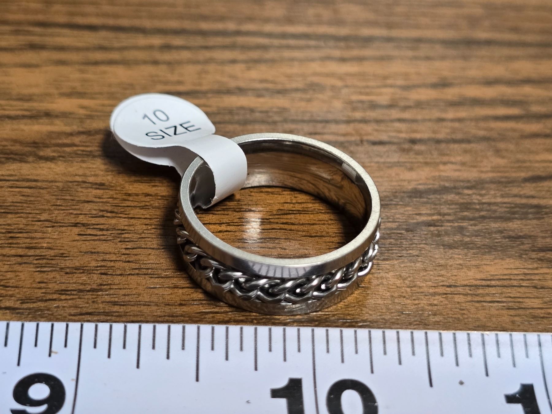 New Men's size 10, stainless steel ring, w/ chain - spins