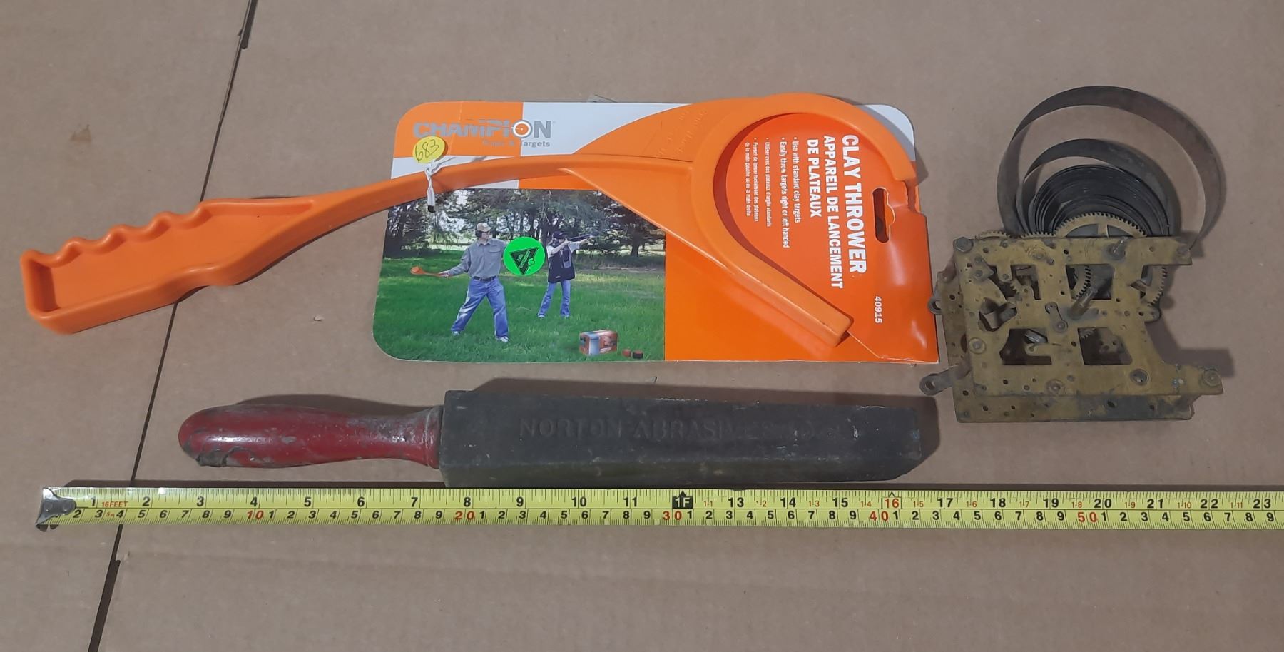 New Skeet Thrower Old Clock Part, Old Sharpener.