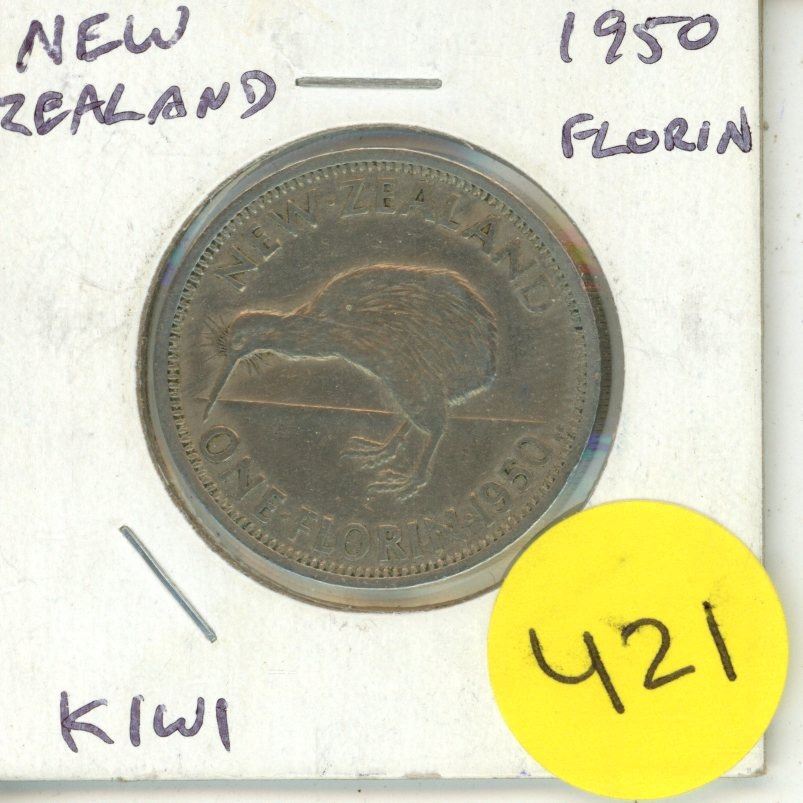 New Zealand. 1950 Florin. Kiwi. F+.