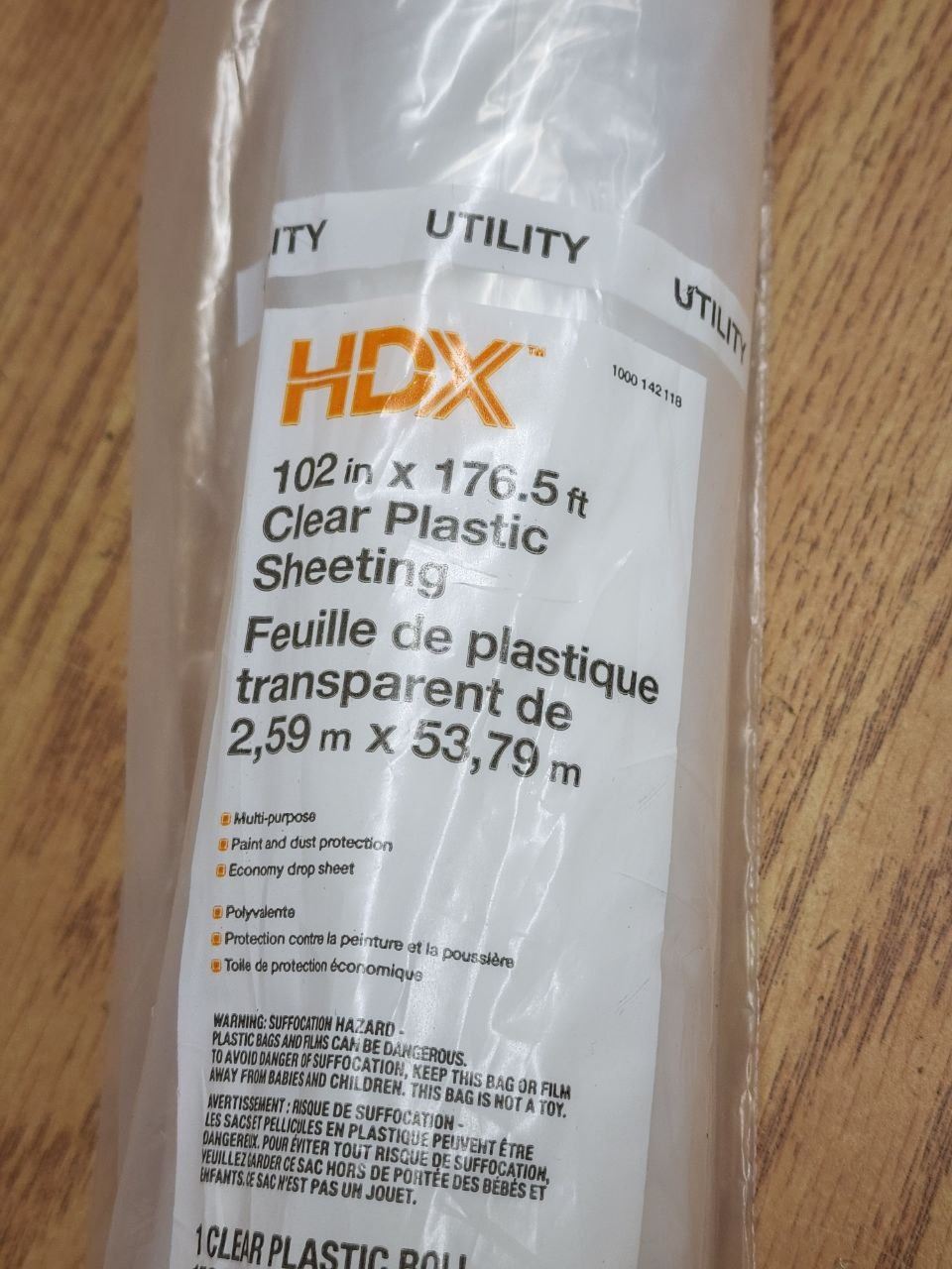 New in Bag, Clear Plastic Sheeting, 102 In x 176.5 Ft