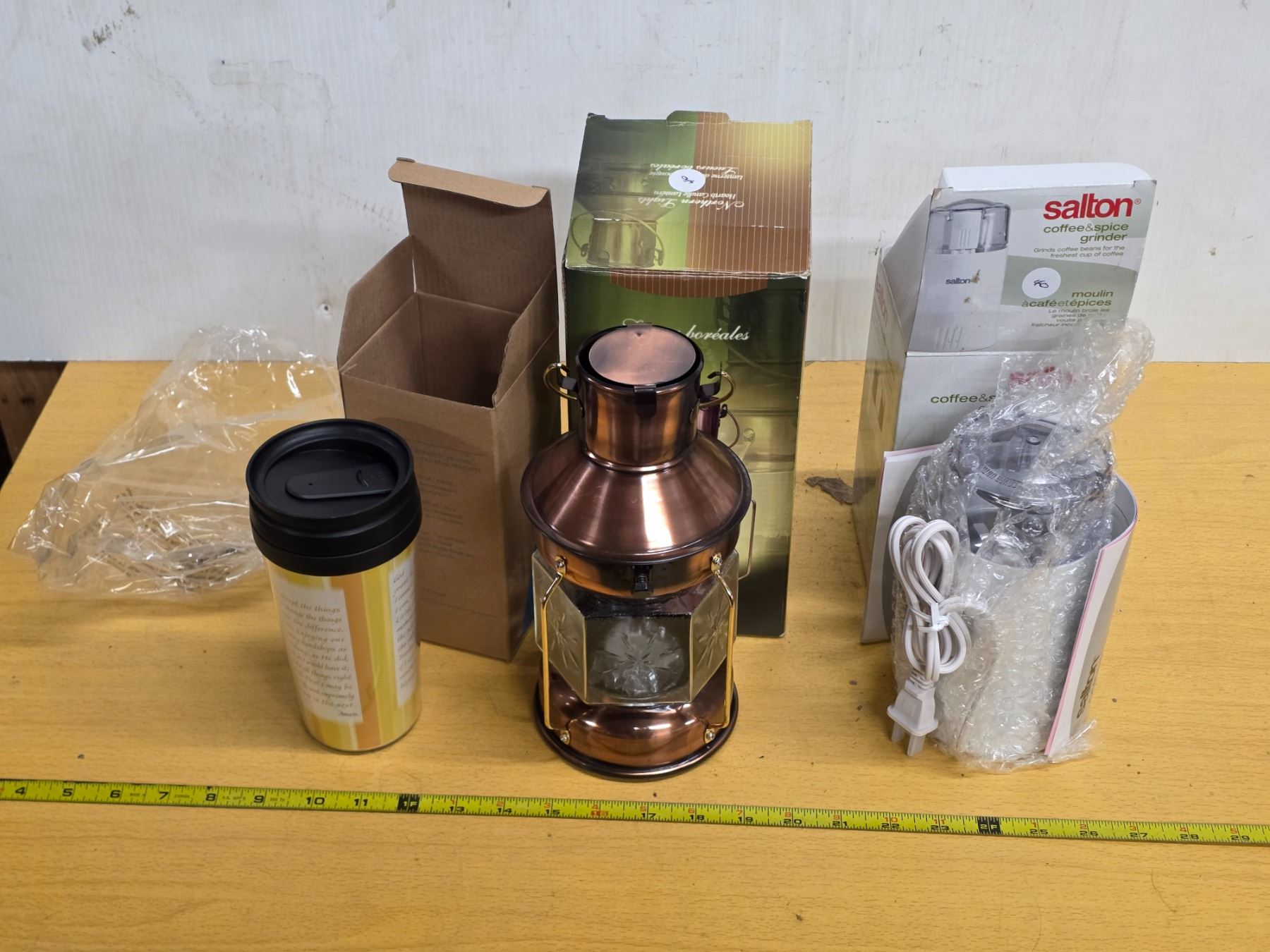 New northern light candle lantern, new coffee / spice grinder, and new small coffee mug