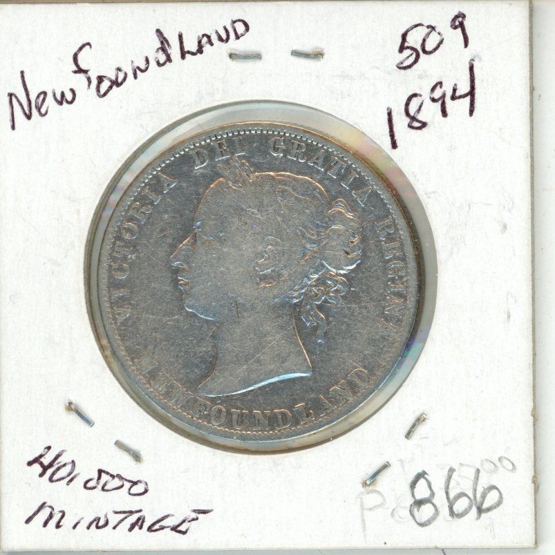 Newfoundland 1894 Low Mintage Half-Dollar VF .925 Silver
