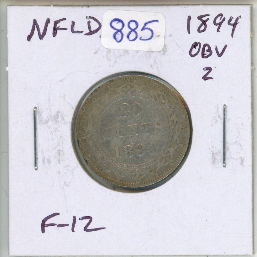 Newfoundland. 1894 Obverse 2 Silver 20 Cents. F-12.