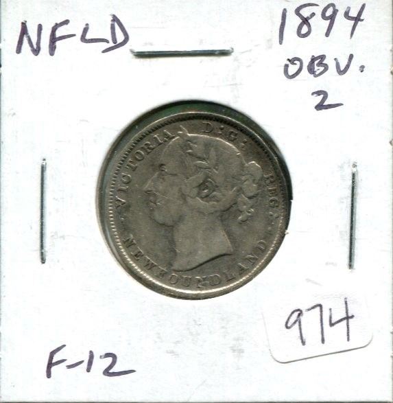 Newfoundland. 1894 Victorian Silver 20 Cents. Obverse 2. F-12.